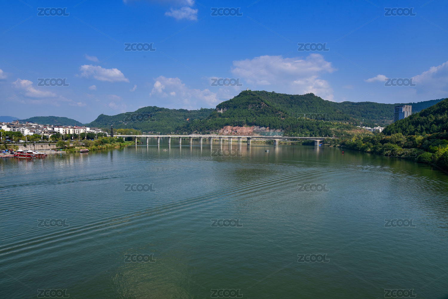 中国四川省南部县新城区禹迹岛湿地廊桥建筑