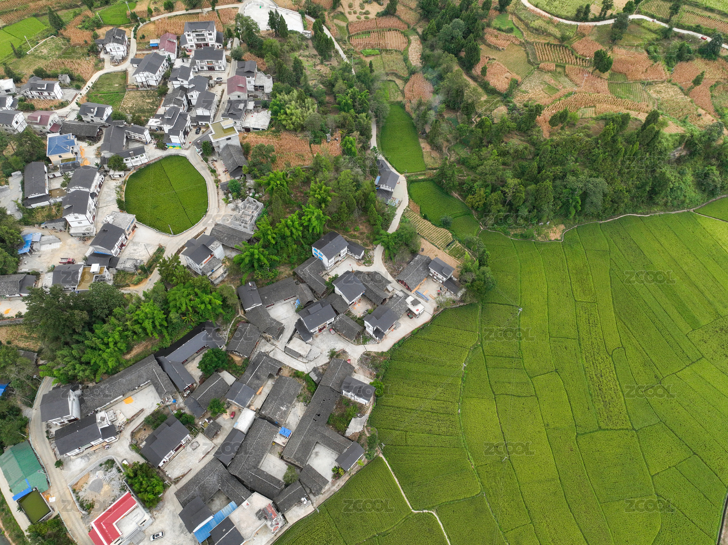 俯瞰南方农村水稻田风光