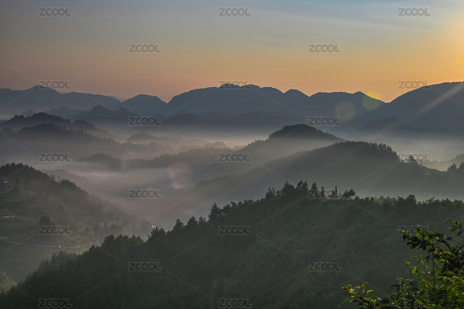 夏季早晨重庆綦江区万盛黑山镇南门村的云海与朝霞