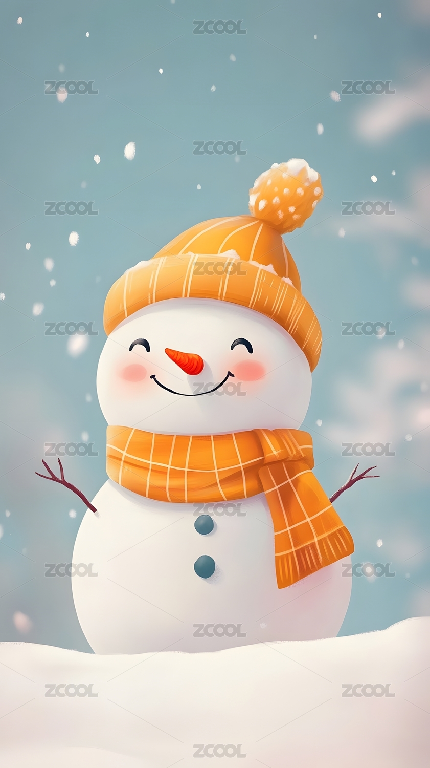 冬日雪景微笑小雪人背景