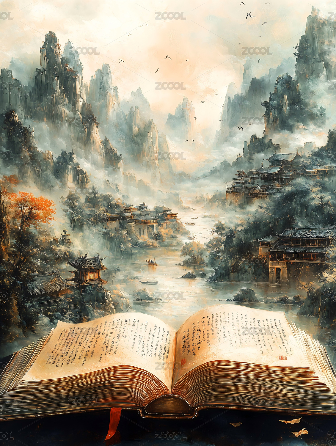 云海中的打开书卷