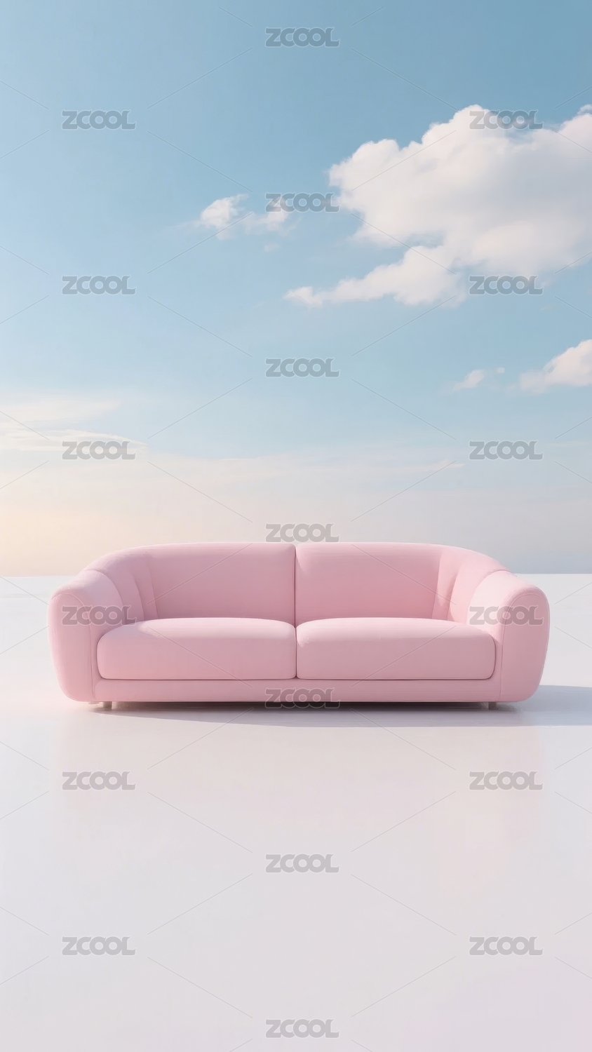 沙发,粉色,蓝天,白云,简约,现代,设计,家居,室内,装饰