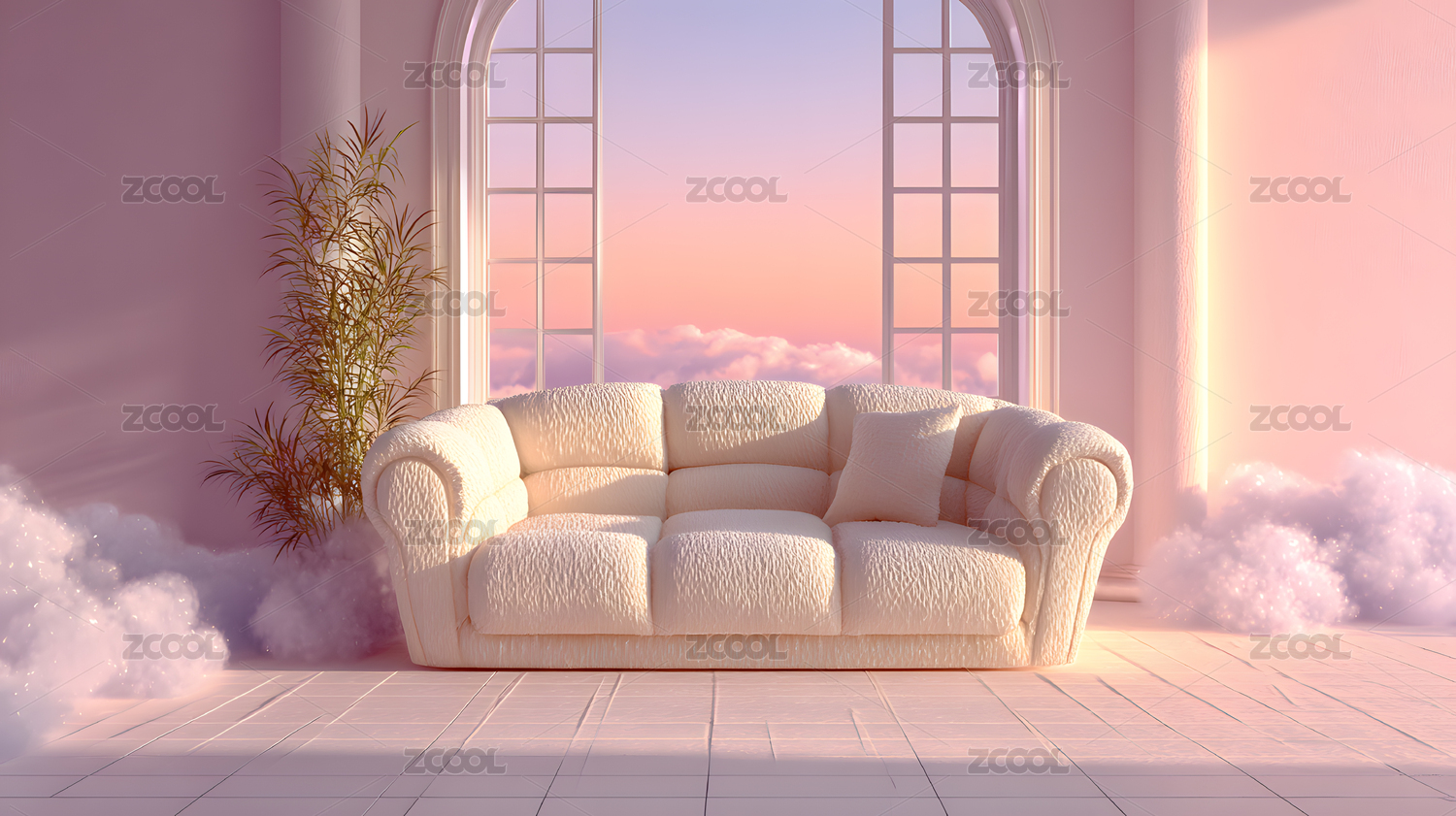 3D云朵沙发超现实背景