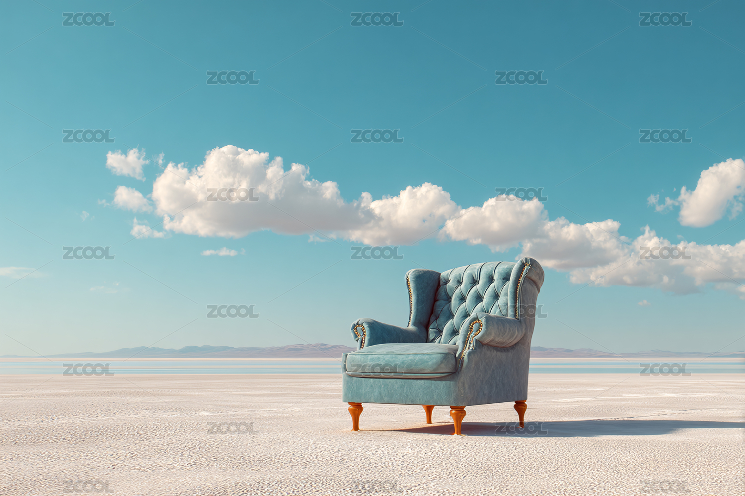 蓝白云下的沙发背景