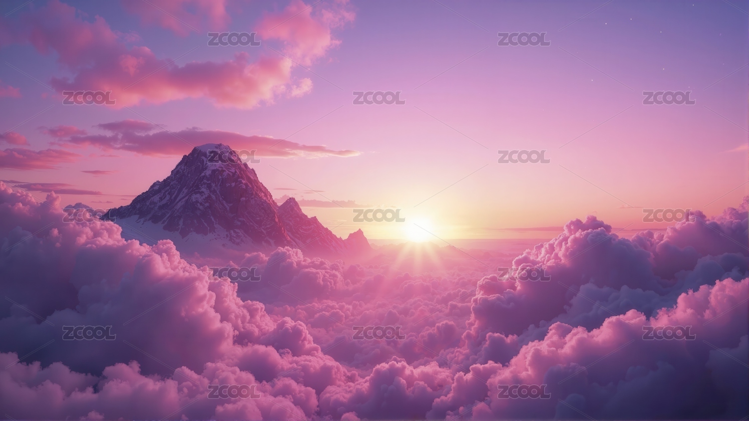 云海,日出,天空,云朵,阳光,霞光,粉色,蓝色,美丽,壮观