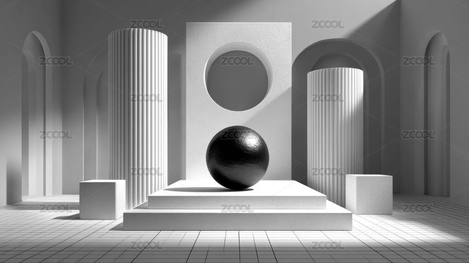 极简,几何,球体,空间,光影,现代,建筑,黑白,对称,设计
