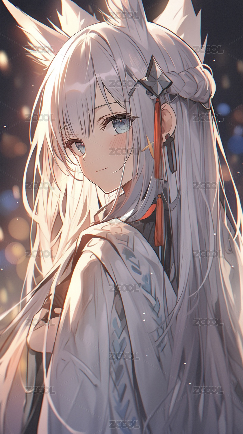 天使,动漫,插画,女性,梦幻,少女,长发,白裙,纯洁,二次元