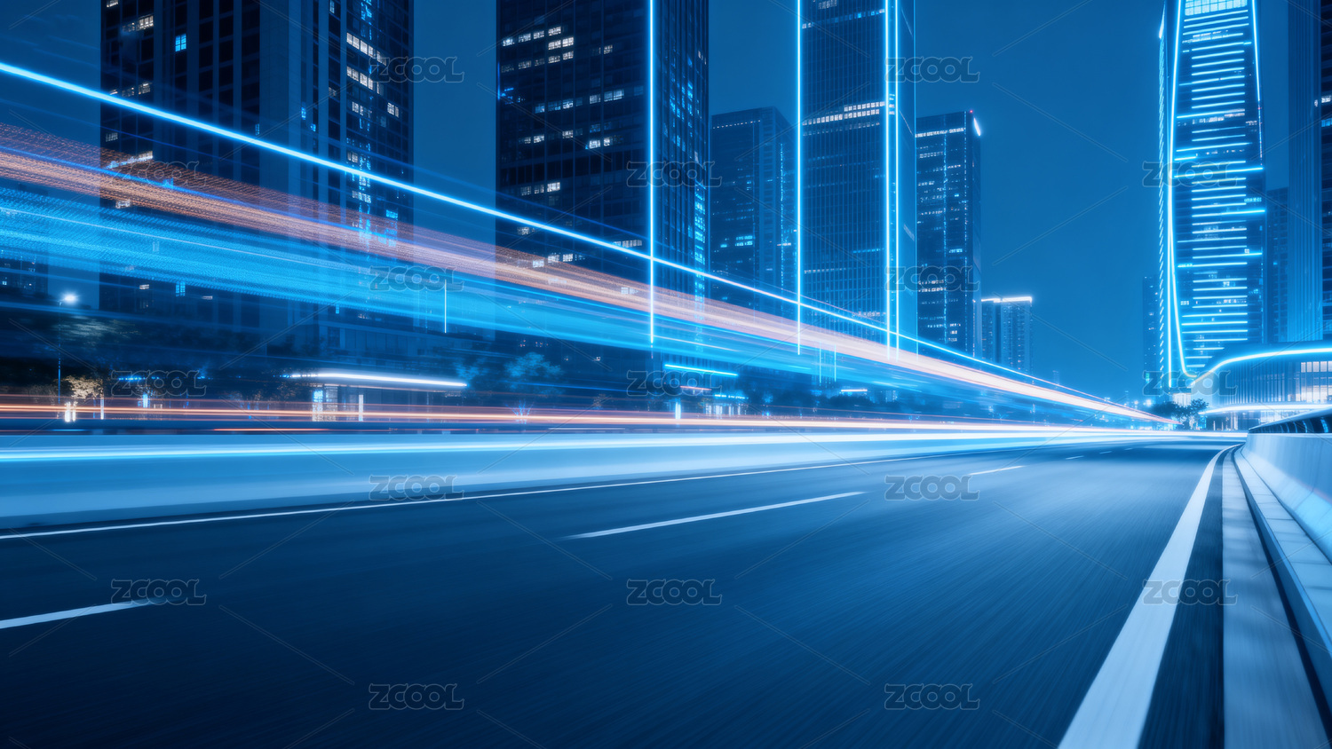 蓝色,夜空,城市,光轨,高楼,繁华,动感,公路,现代化,冷色
