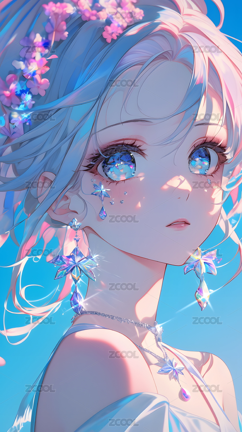 粉色,光影,动漫,插画,女性,柔美,侧颜,长发,梦幻,唯美