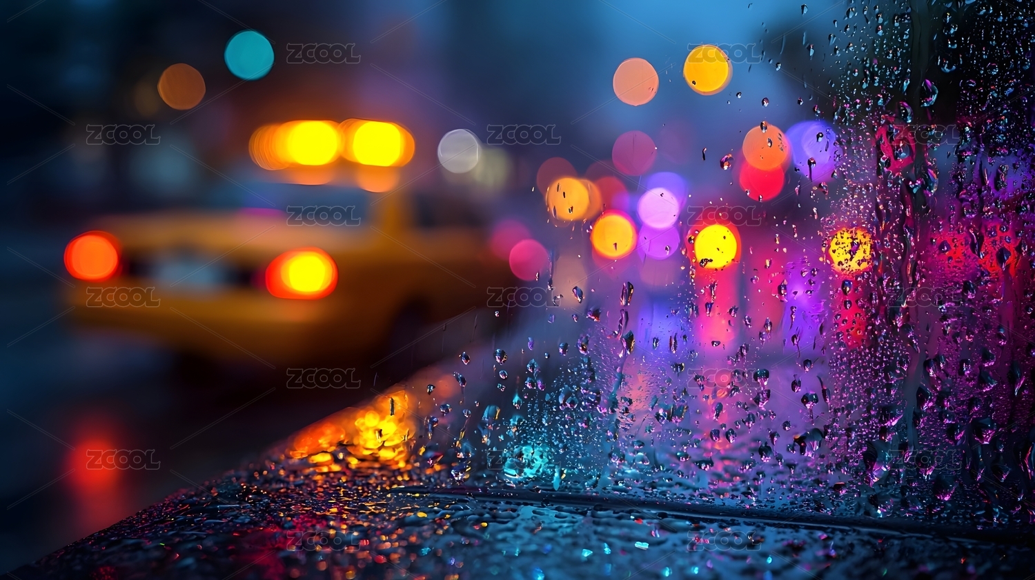 雨夜,城市,霓虹,灯光,街道,反射,湿润,夜晚,夜景,交通