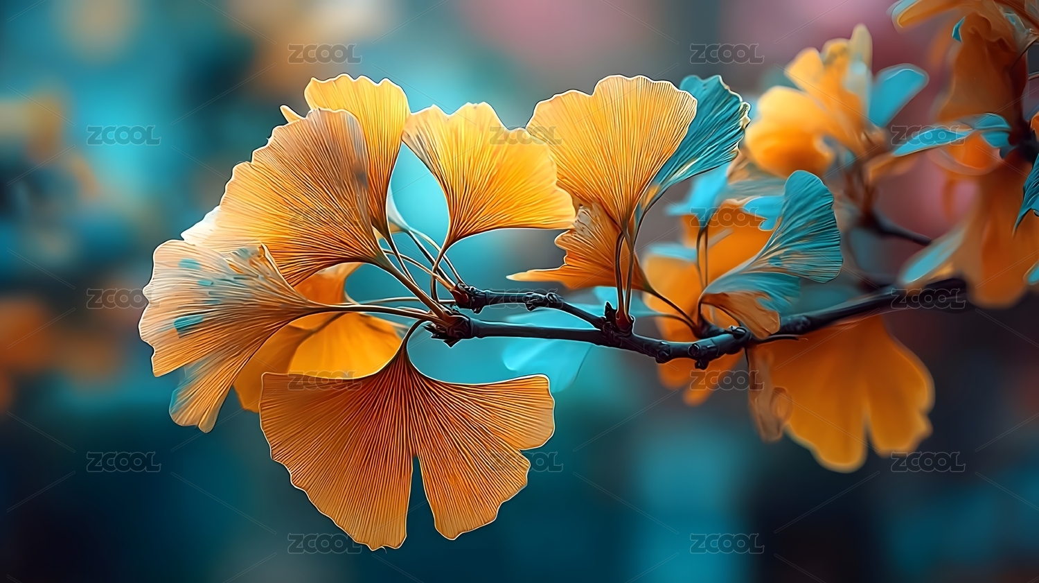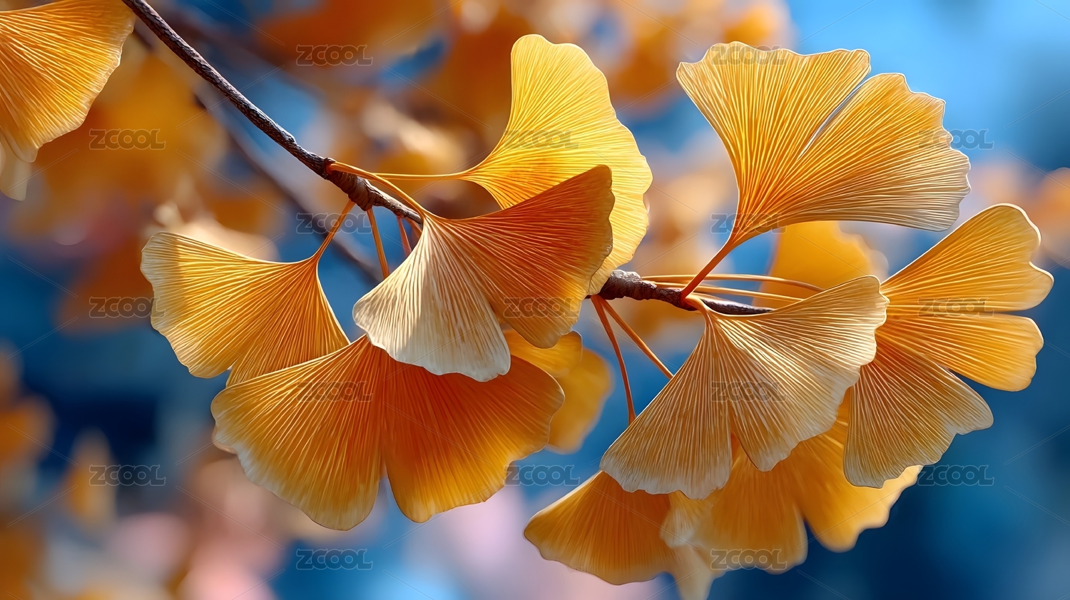 黄色,背景,叶子,枝条,脉络,秋天,自然,叶脉,模糊,金黄
