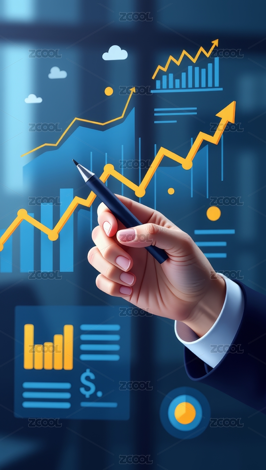 手触箭头科技感数据增长场景