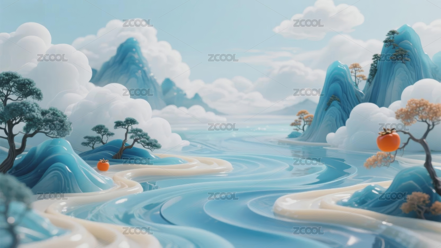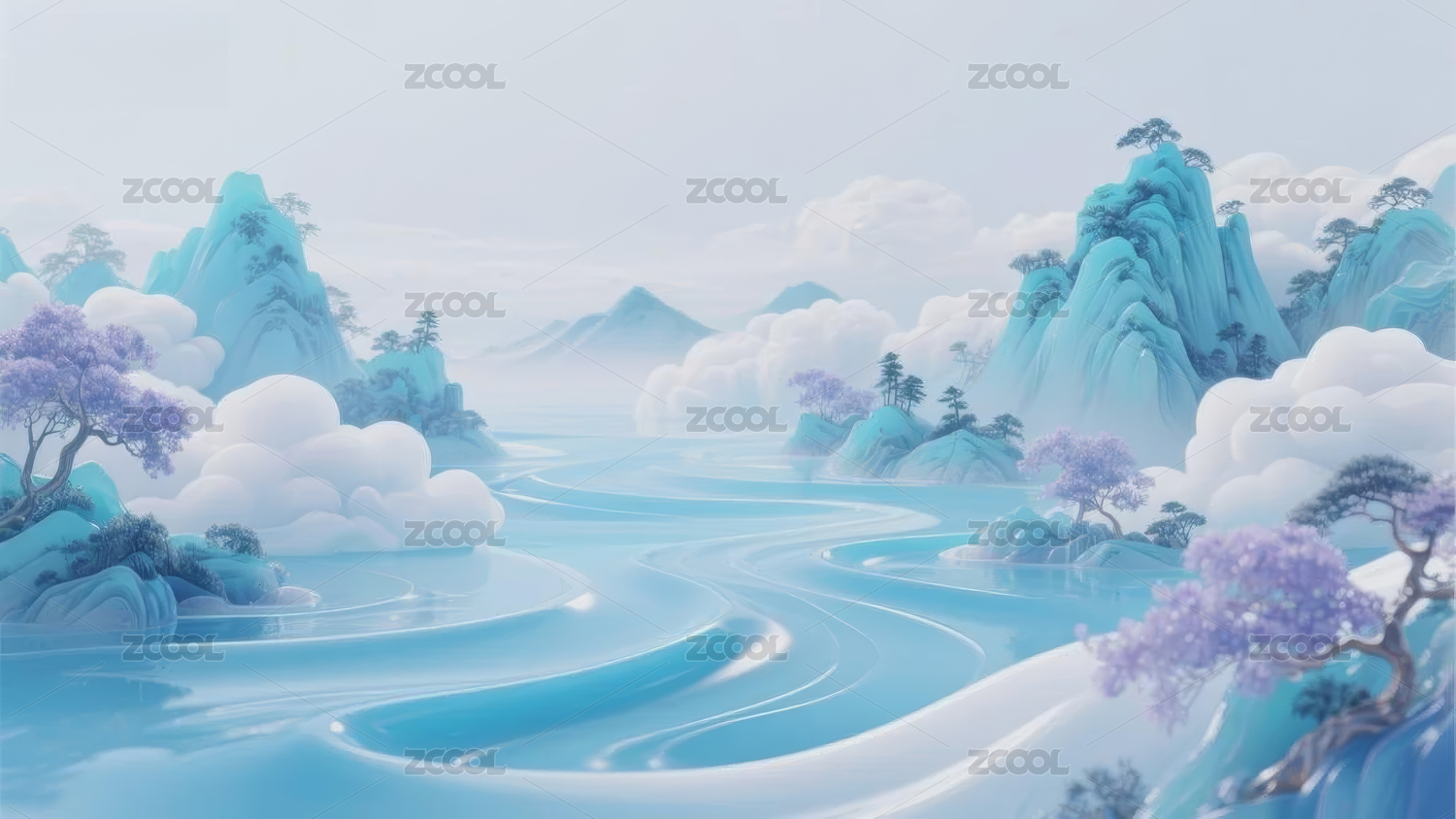 自然, 风景, 河流, 山峰, 树木, 梦幻, 仙境, 宁静, 美丽, 雪地