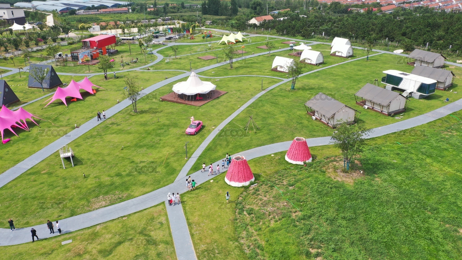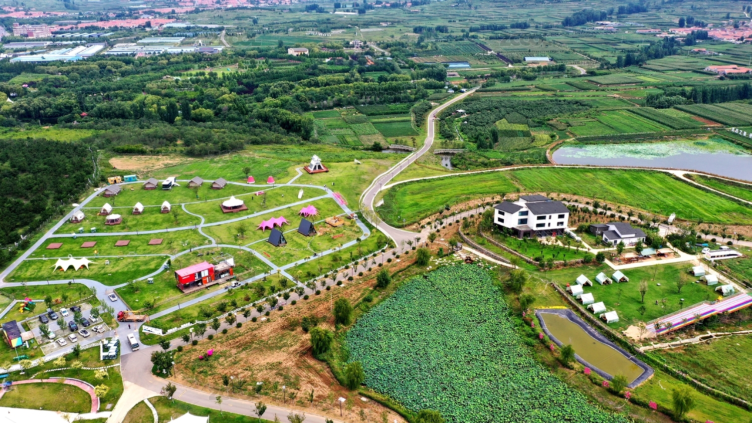 中国安徽省宣城市伍员山水公园航拍视角蓝莓种植园风光