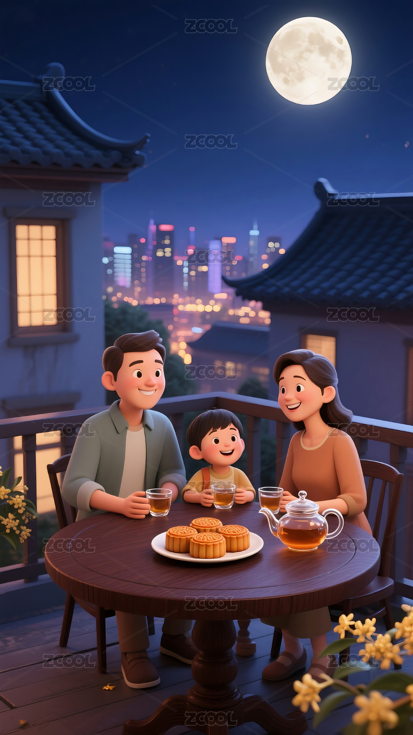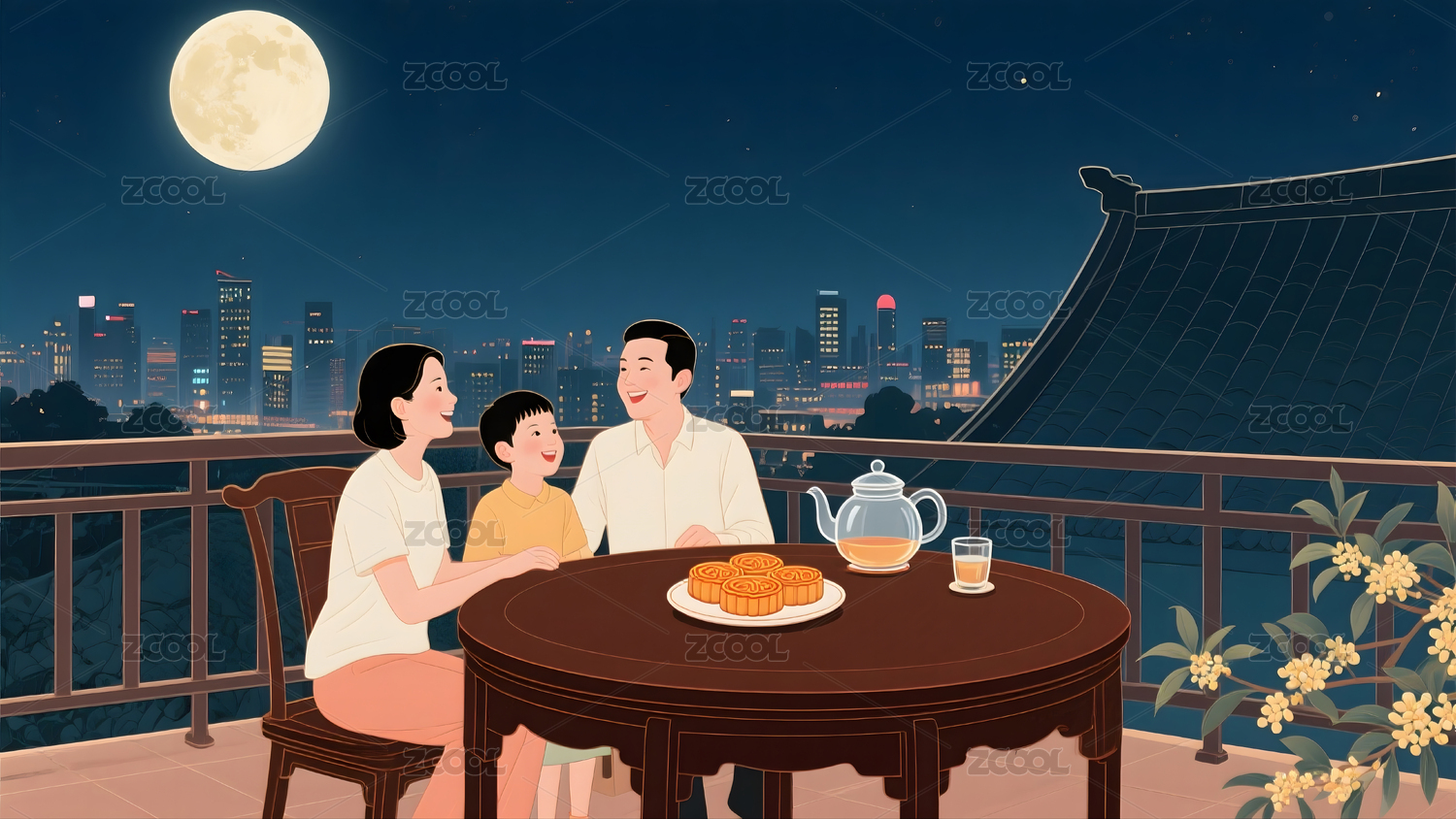 中秋节,节日,中国,传统,习俗,月亮,圆月,明月,夜晚,聊天