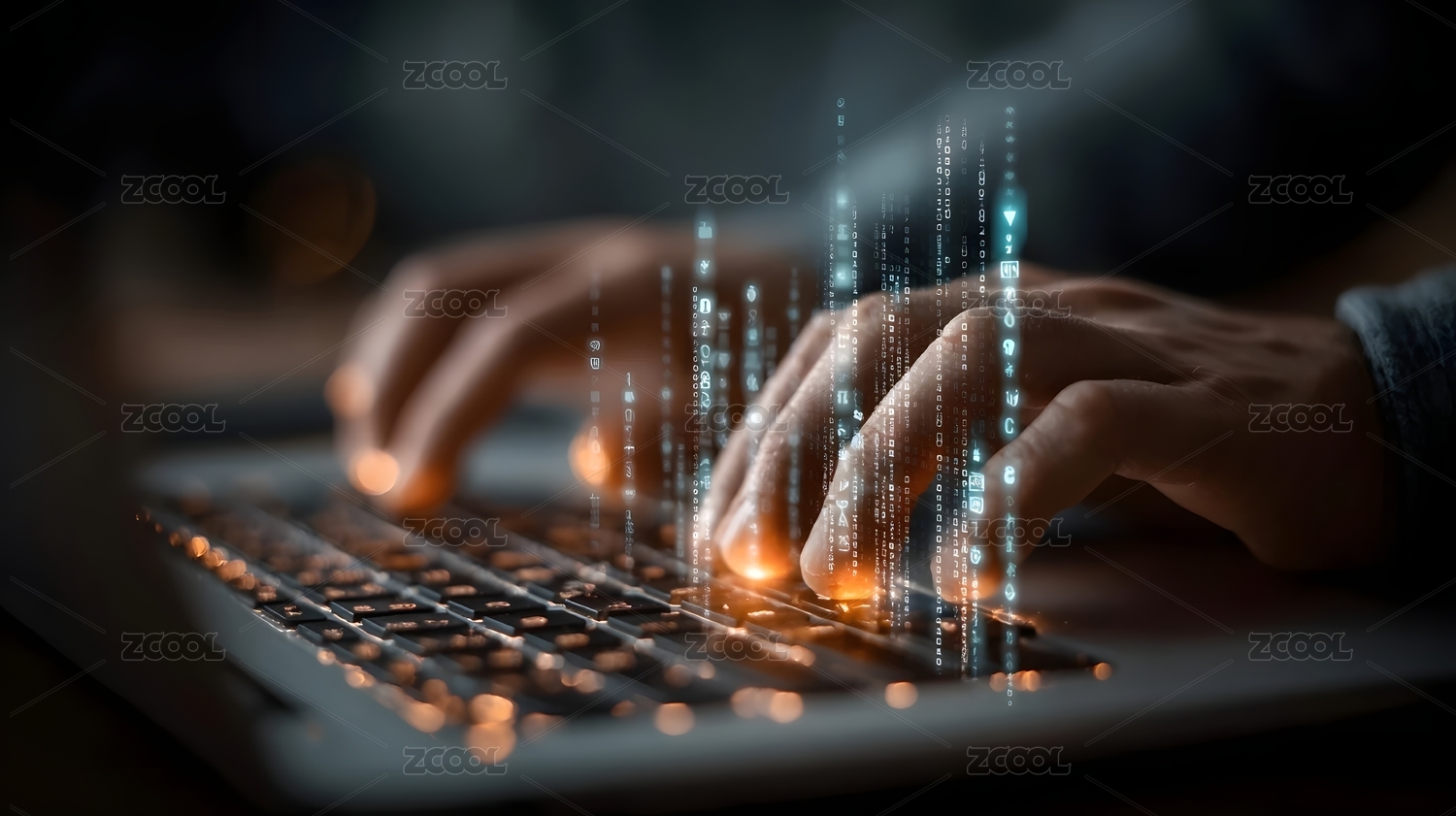 科技感双手打字与数据流