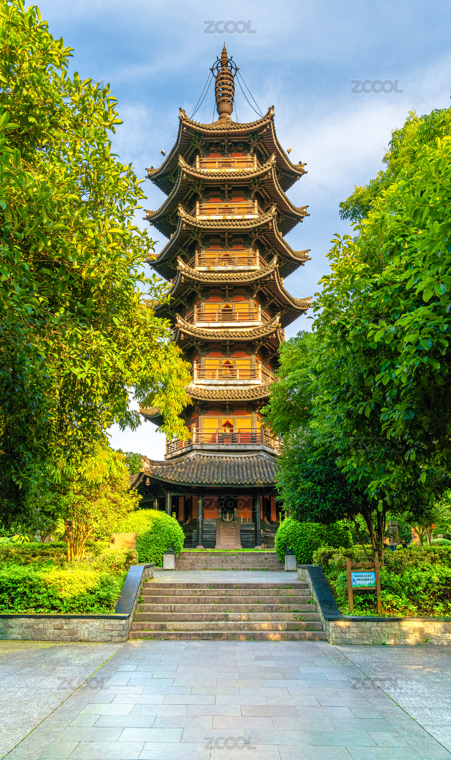 中国江苏苏州灵岩寺塔虎丘塔斜塔