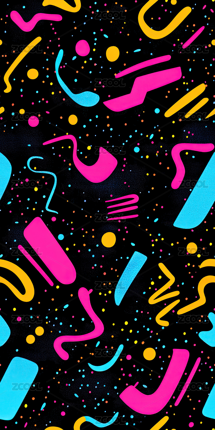 数码派对彩带形状印花图案装饰抽象海报背景