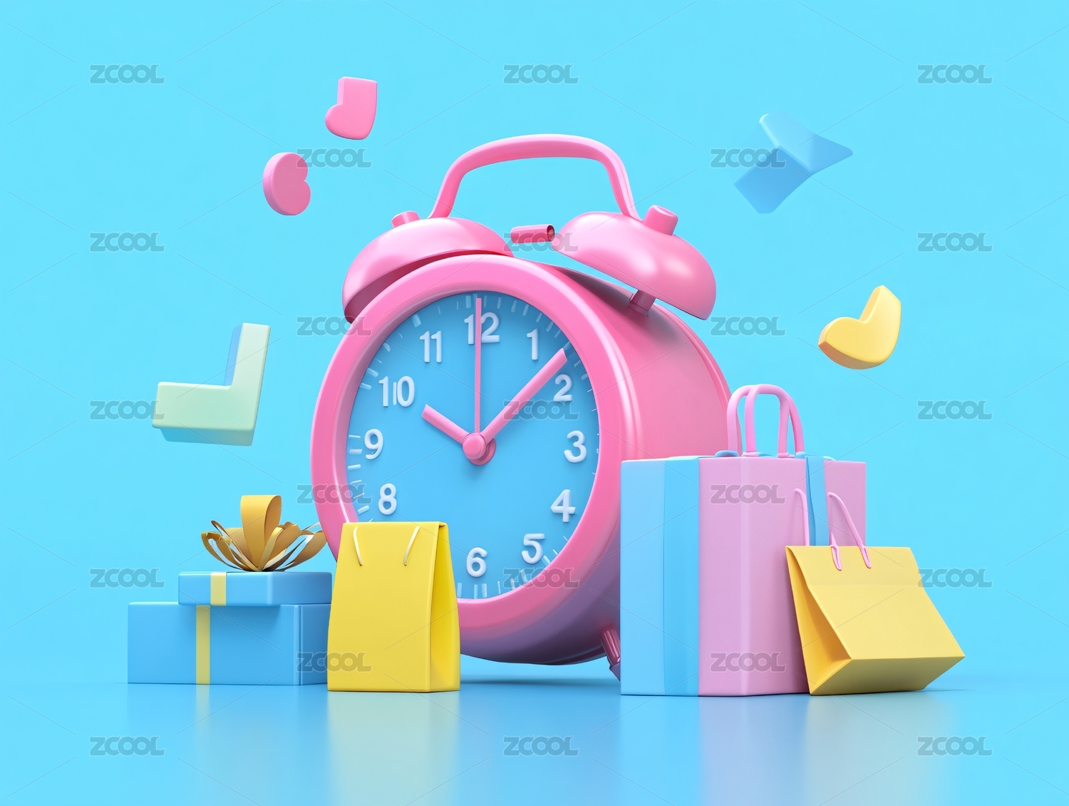 闪电,蓝色,粉色,促销,折扣,优惠券,闹钟,限时,电商,购物