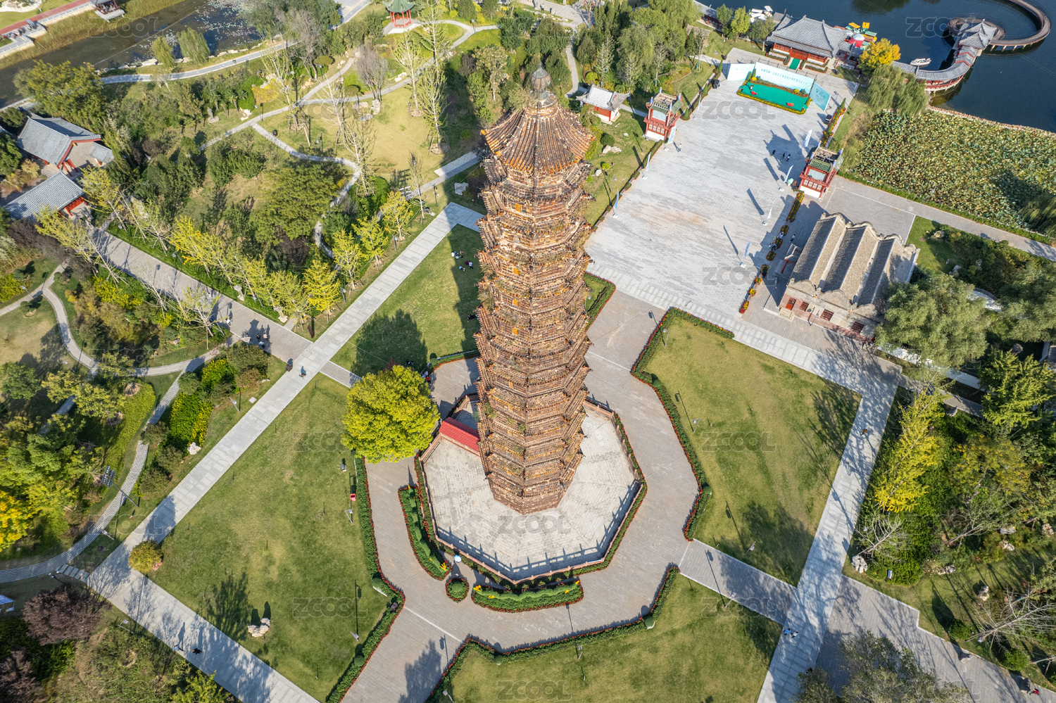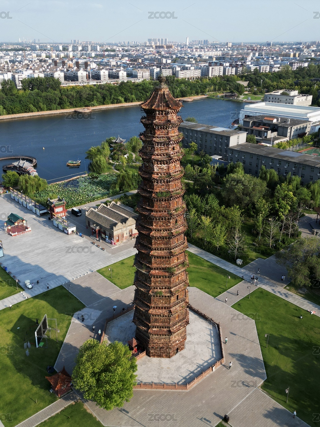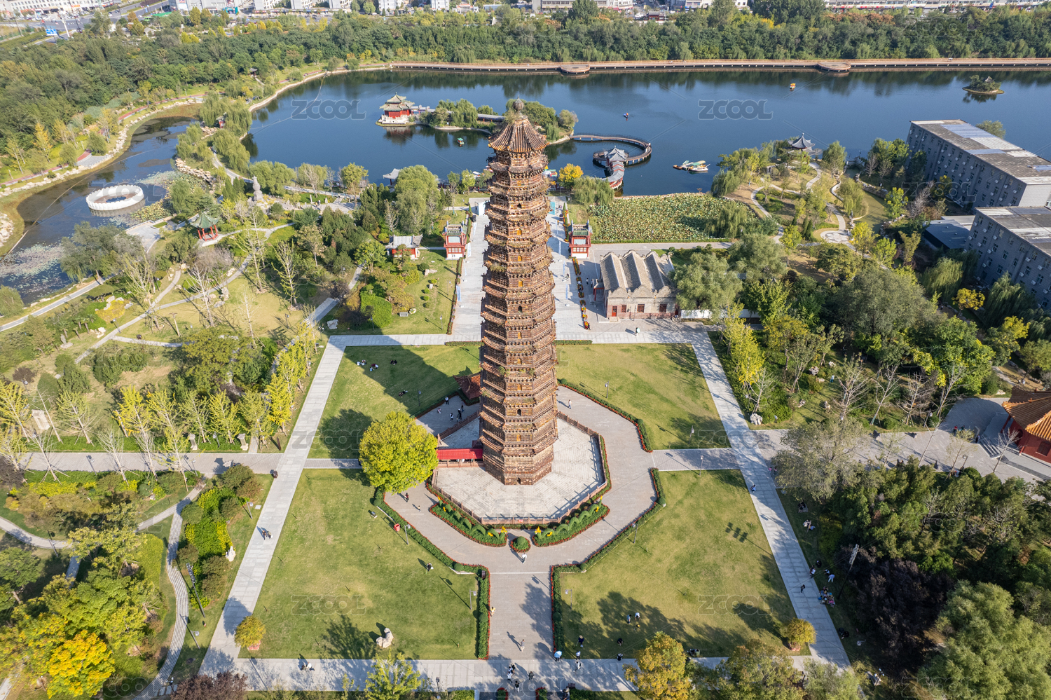 航拍河南开封铁塔公园北宋开宝寺塔祐国寺塔