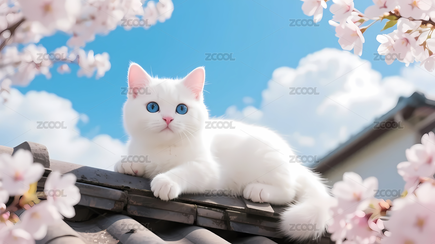 可爱的布偶猫在花丛中动物卡通插画壁纸