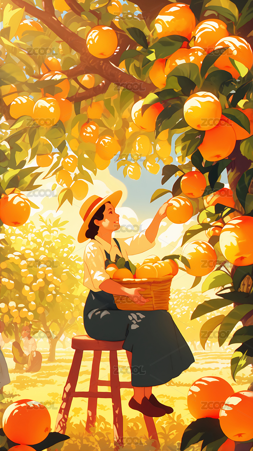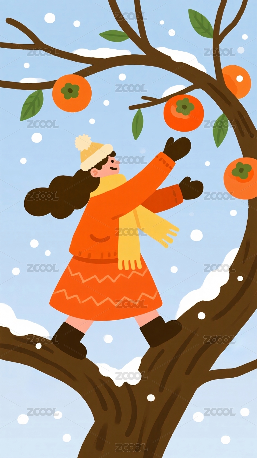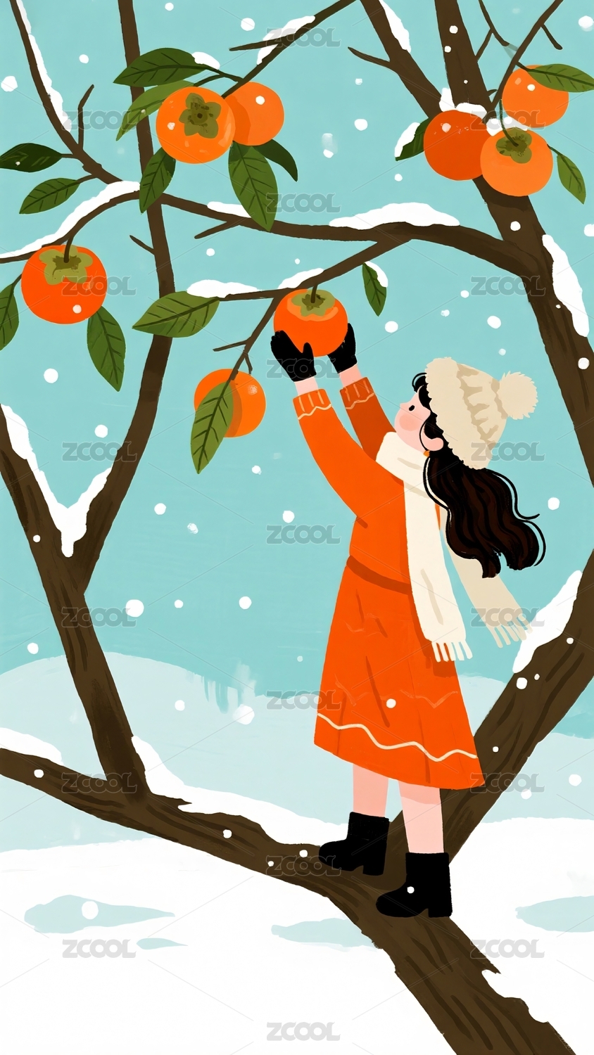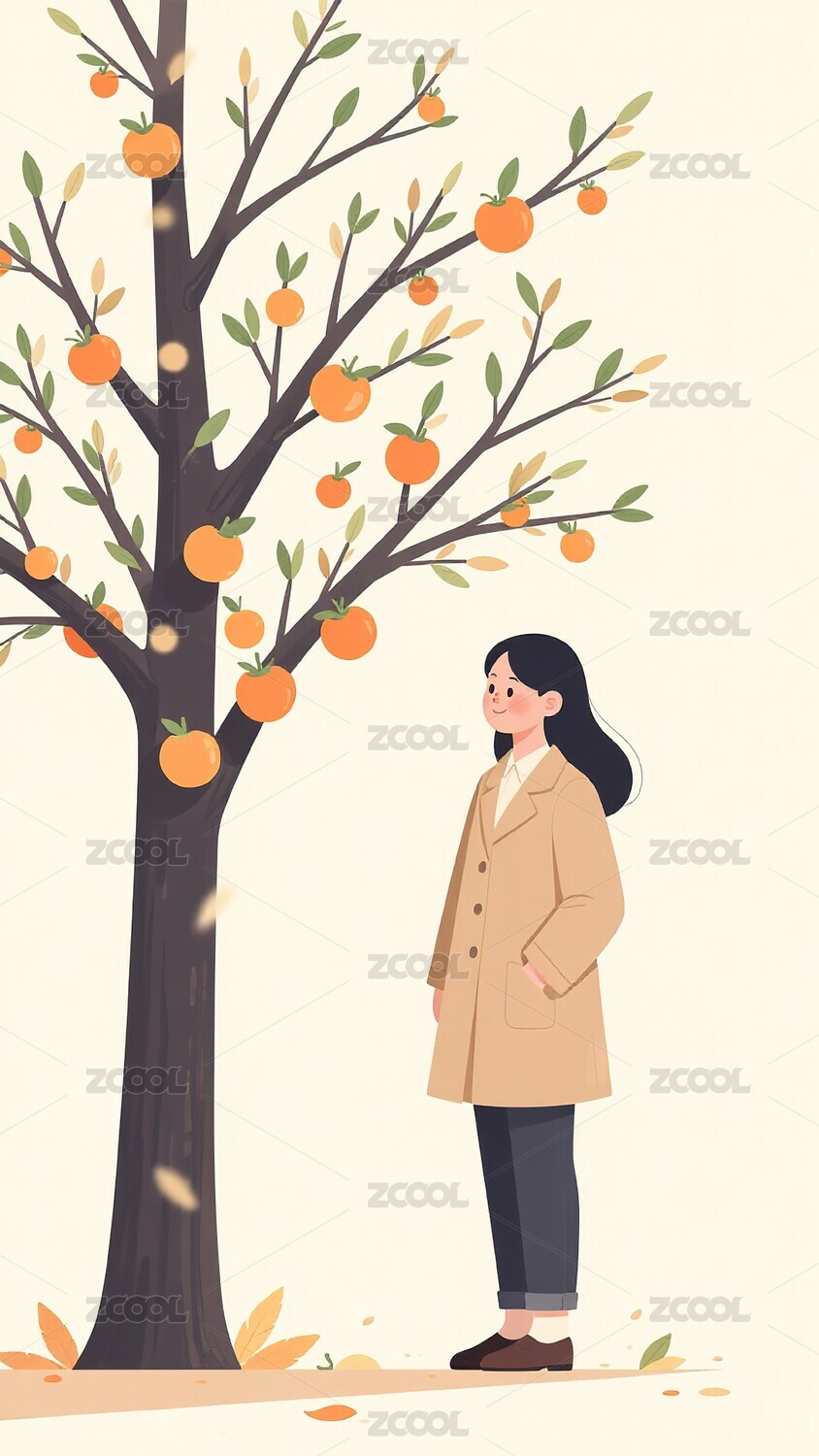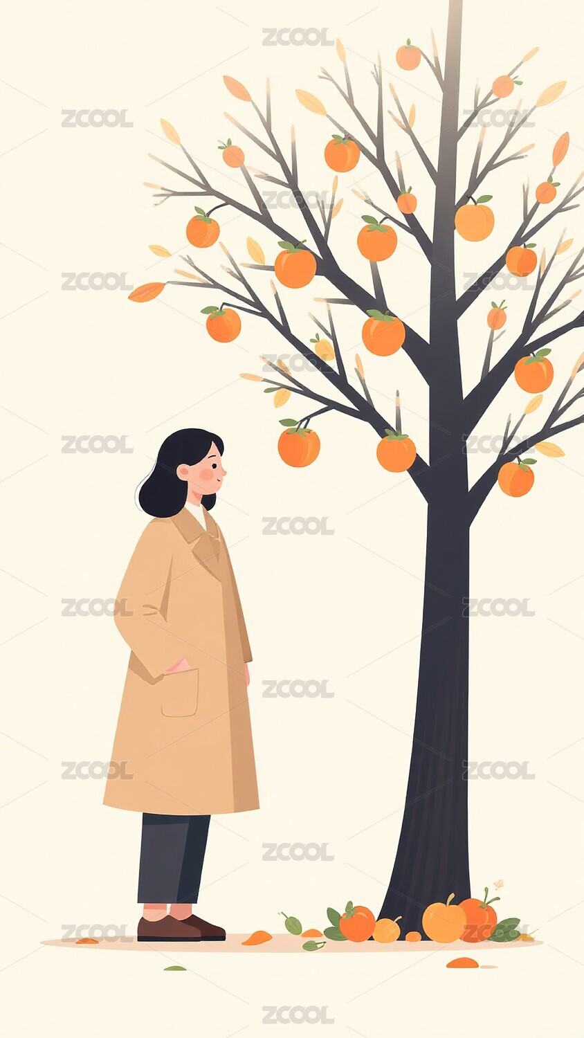 人物,阳光,微笑,柿子树,树枝,橙色,户外,采摘,果实,温暖