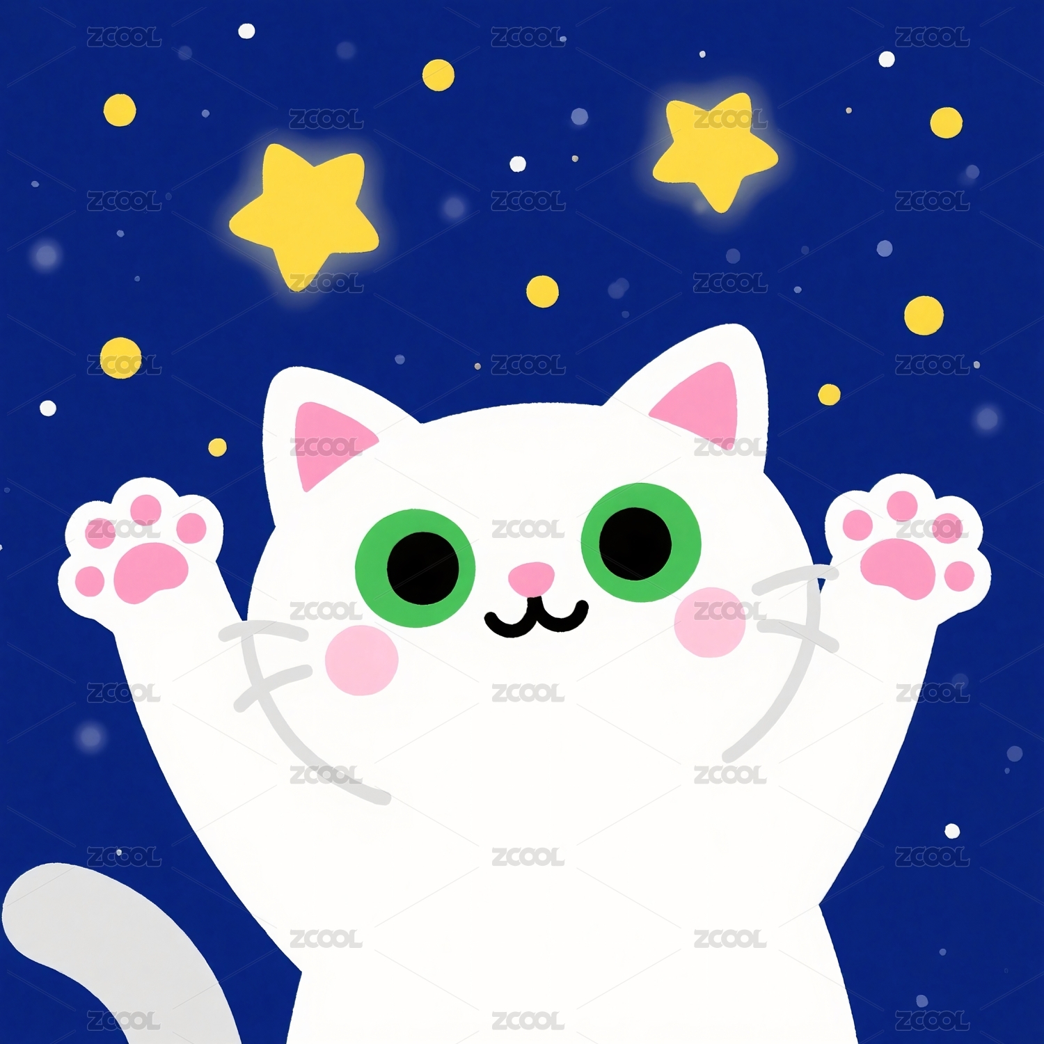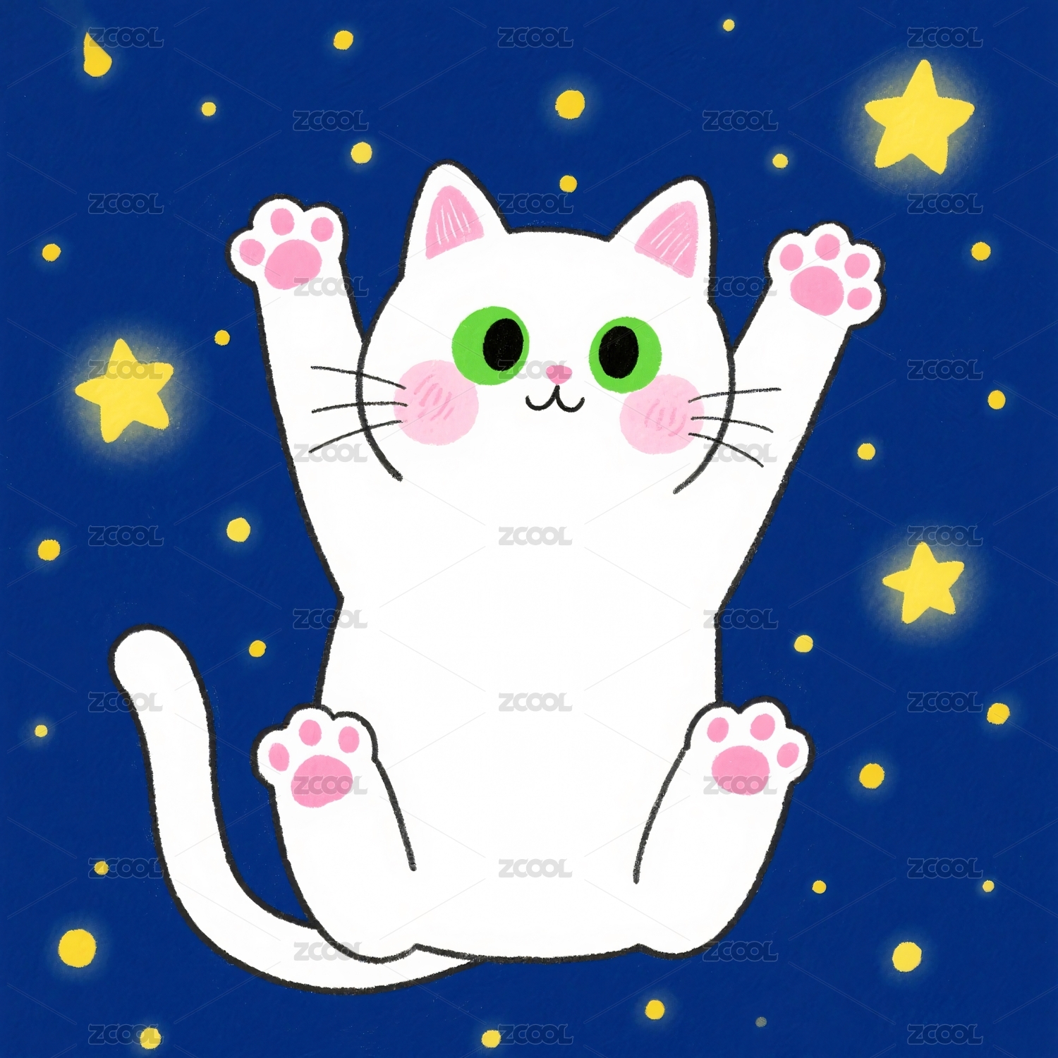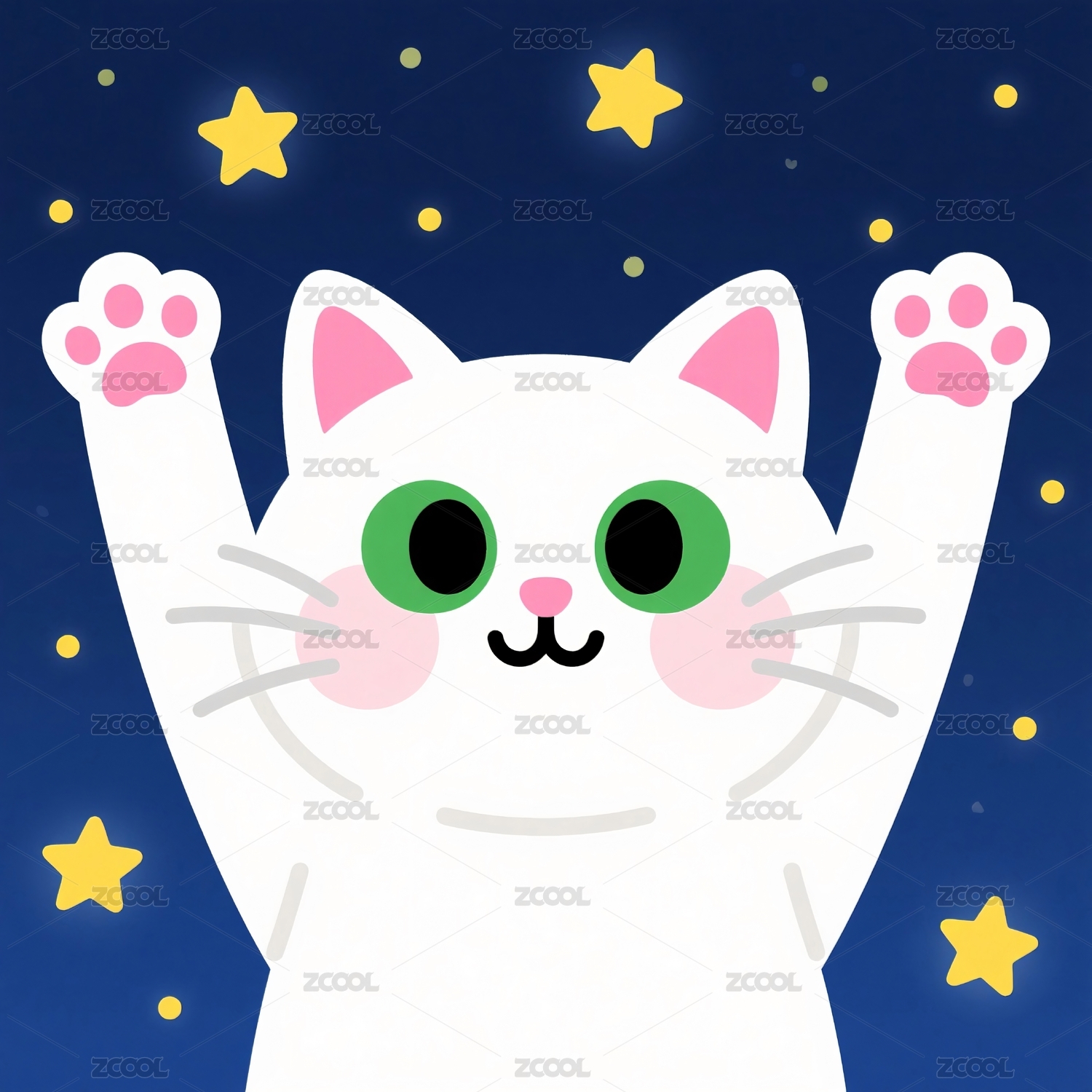 猫咪,可爱,动物,夜空,星星,爪子,粉色,举手,仰望,萌宠