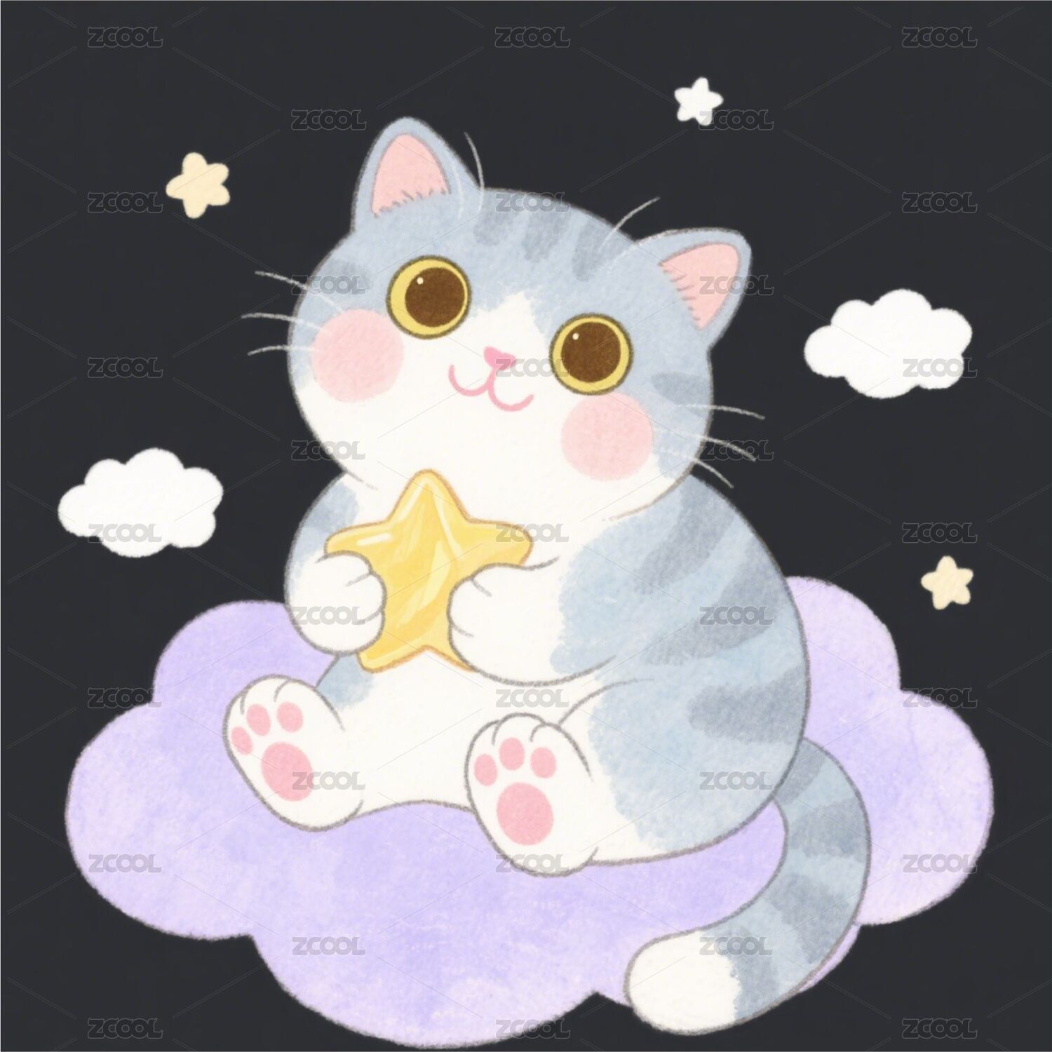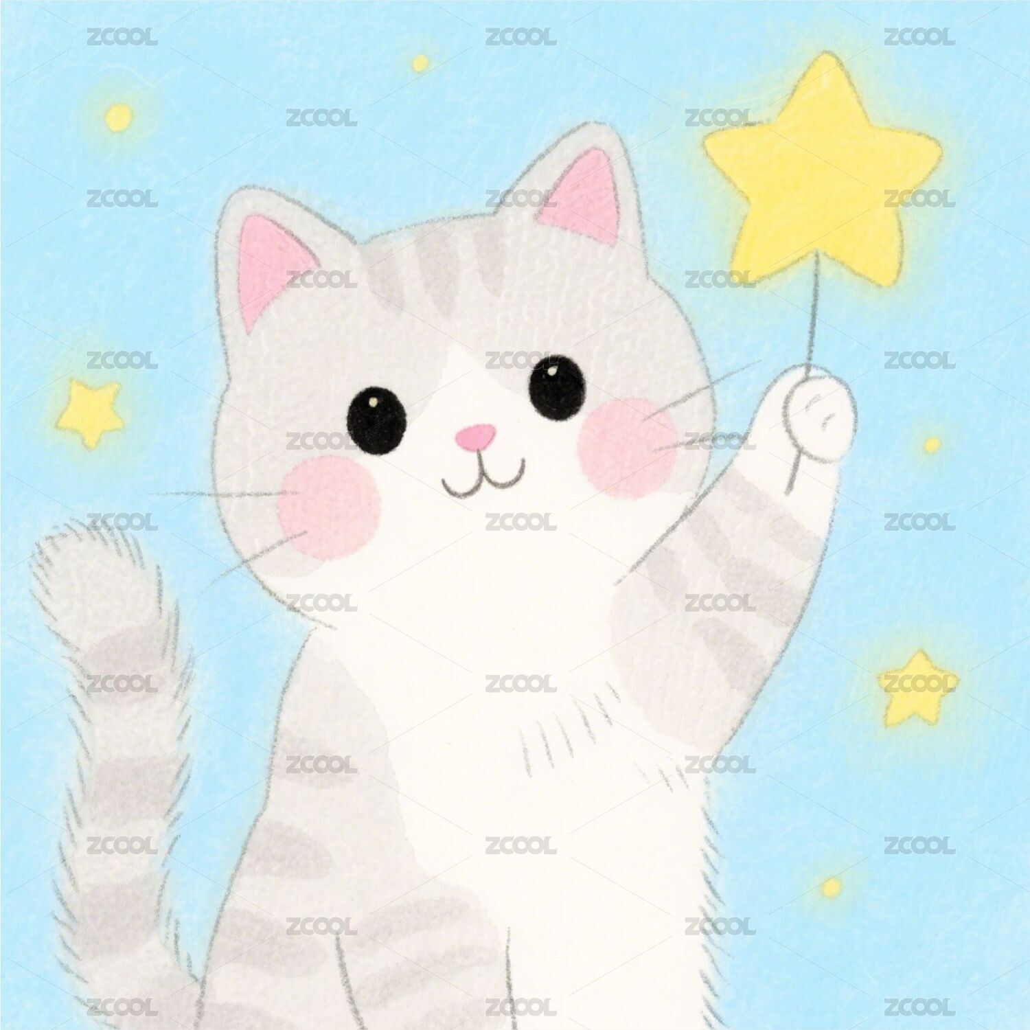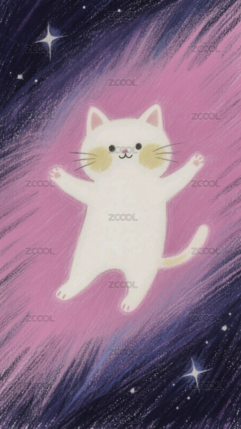猫咪,可爱,动物,夜空,星星,爪子,粉色,举手,仰望,萌宠