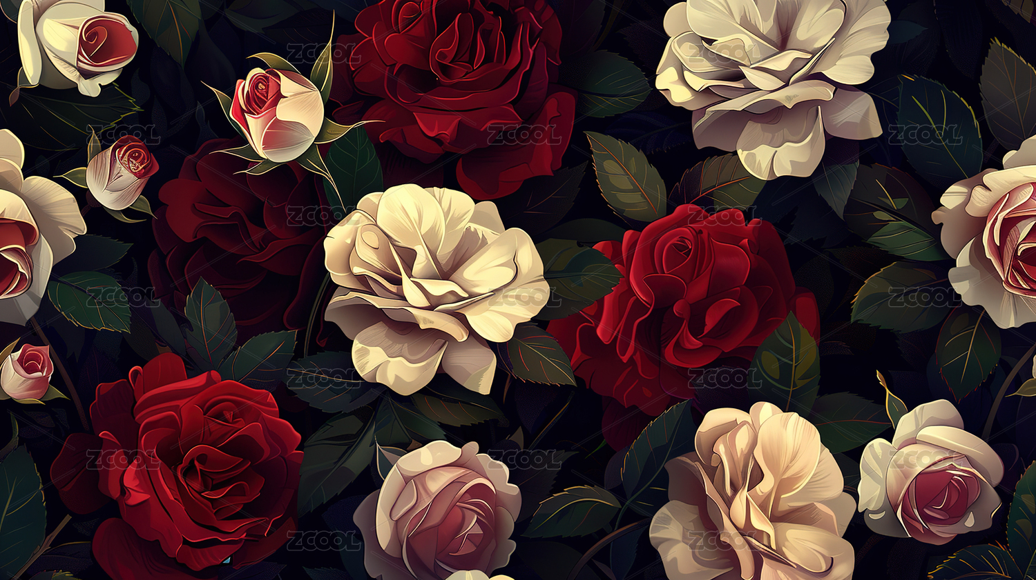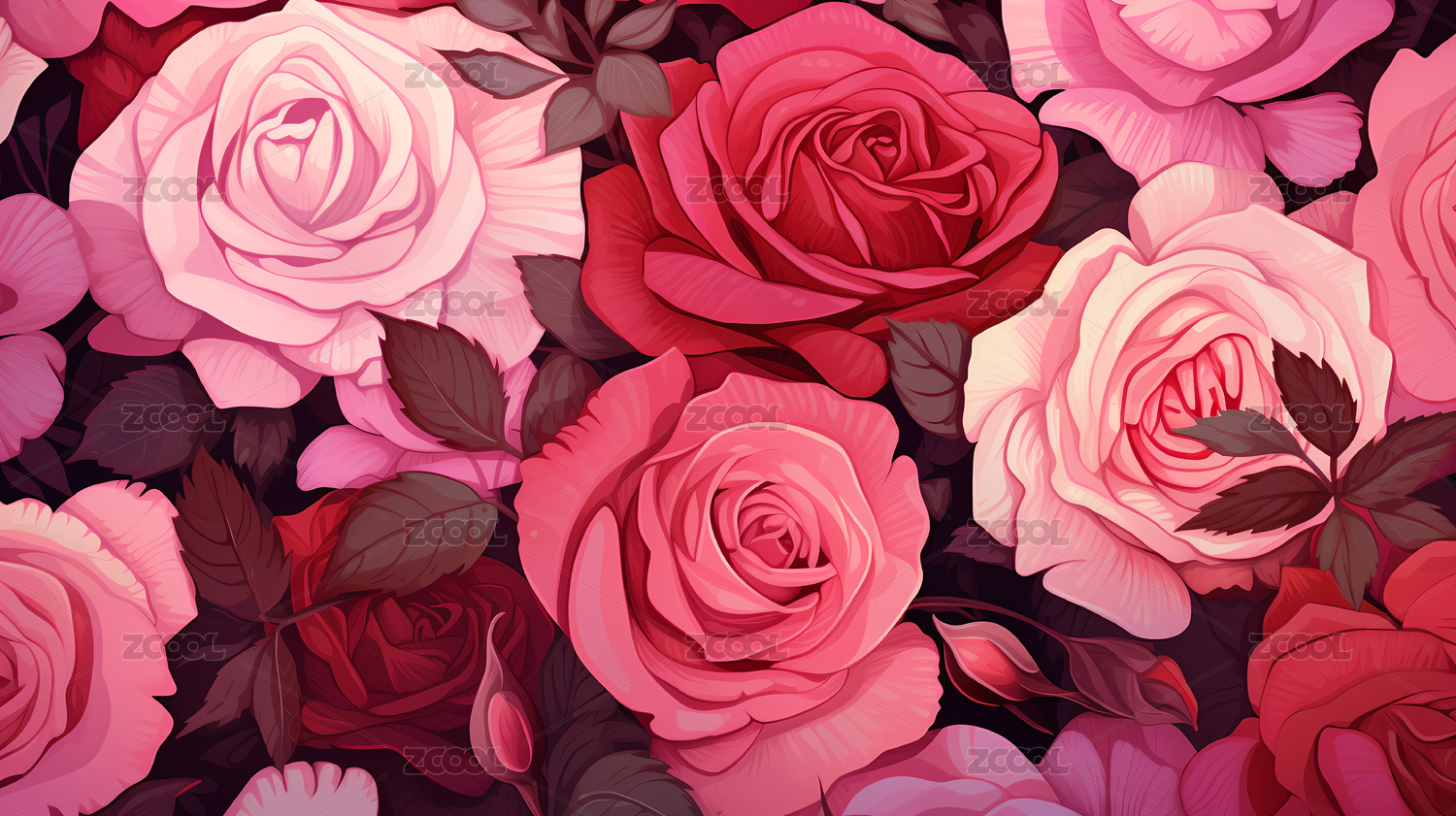 唯美写实风格玫瑰花插画背景壁纸