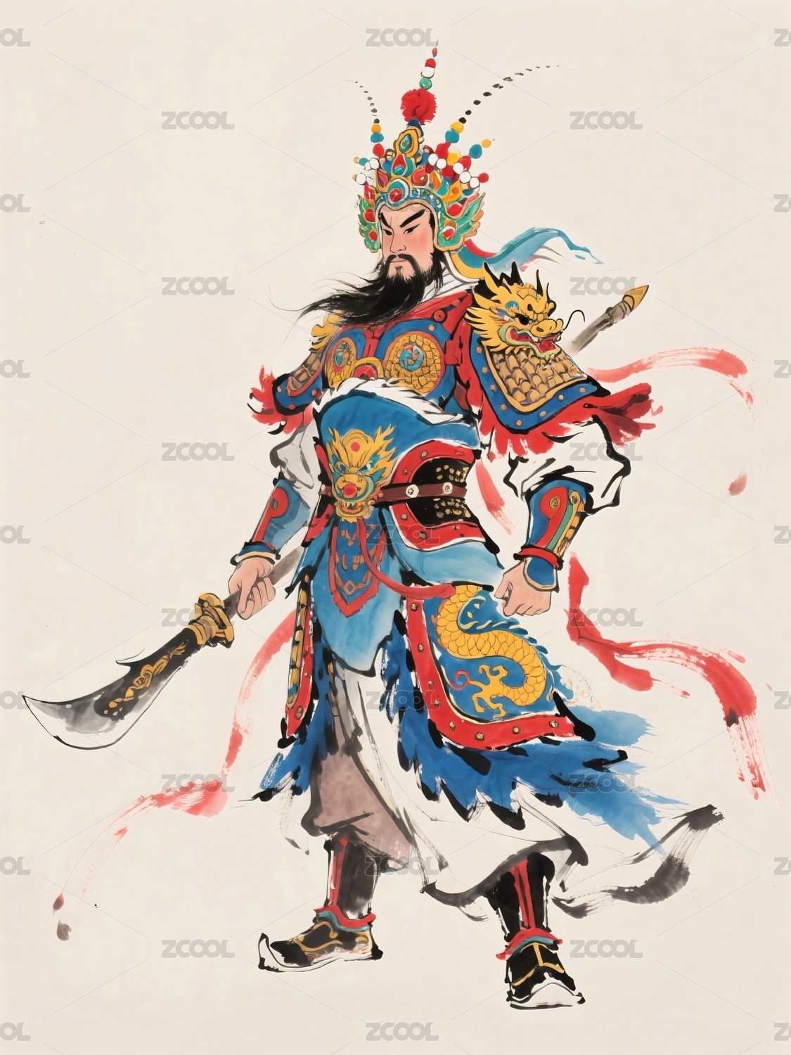 关公持刀身着铠甲形象