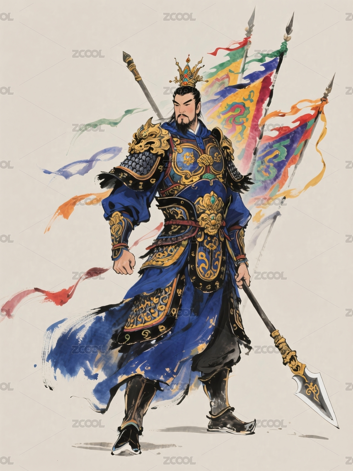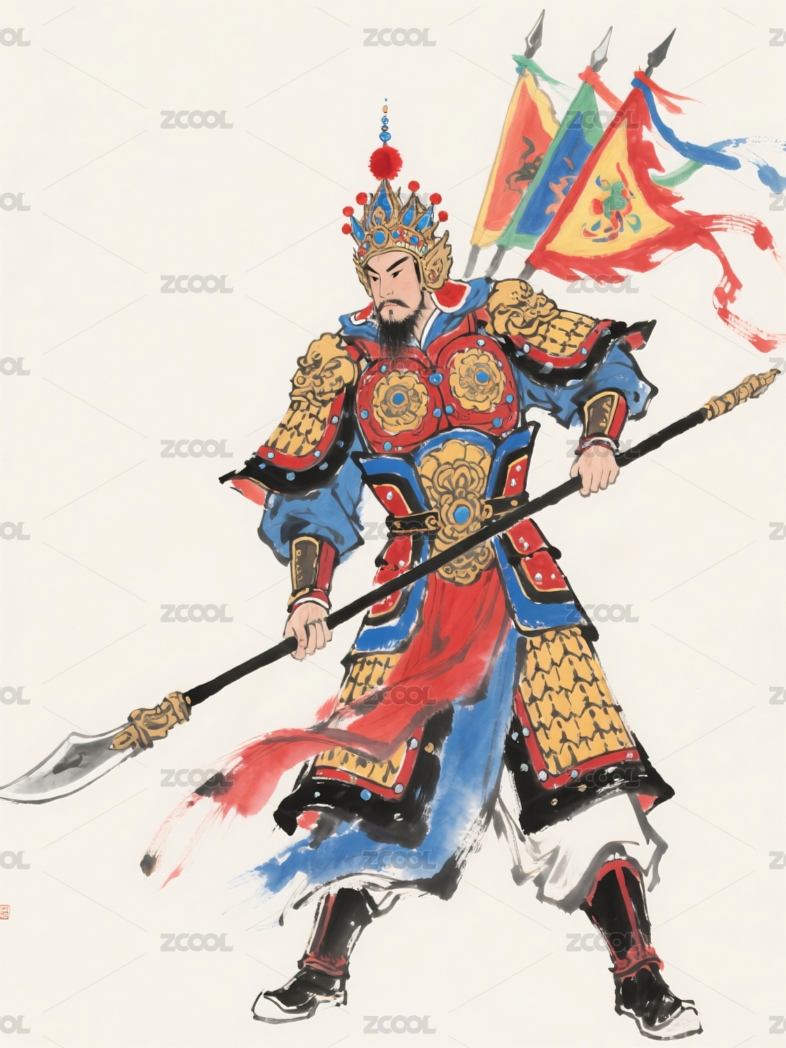 将军,盔甲,武器,站立,士兵,旗帜,战斗,历史,金色,英雄