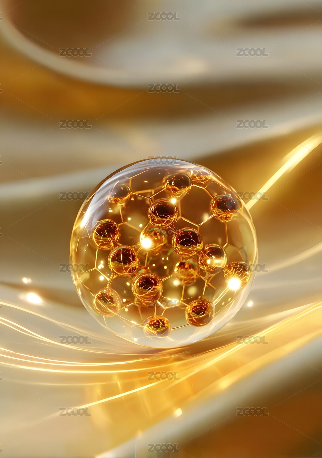 金光闪耀的球体在抽象背景中舞动,光影交织