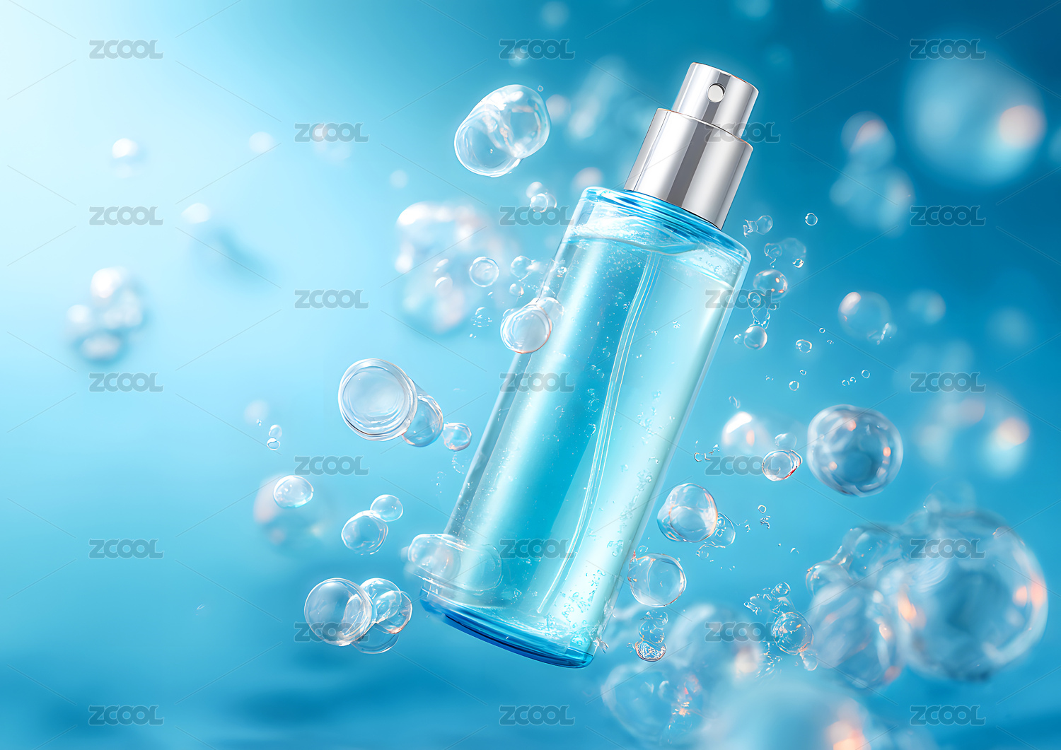 清新明亮彩色透明洗护沐浴瓶化妆品3D插画