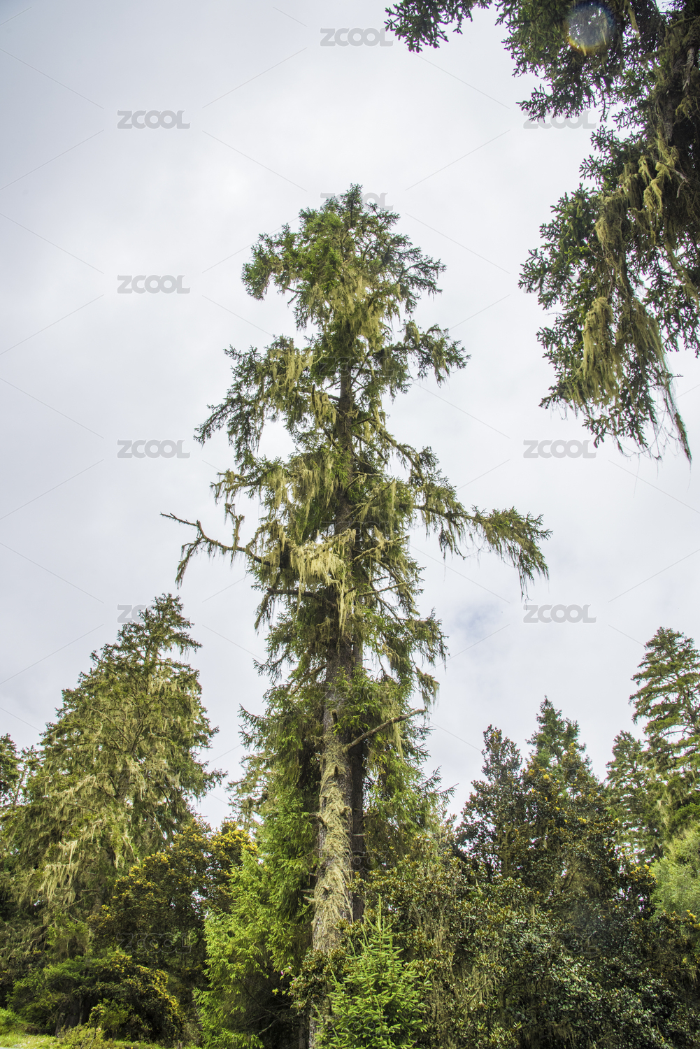 高原原始森林林地的冷杉树林