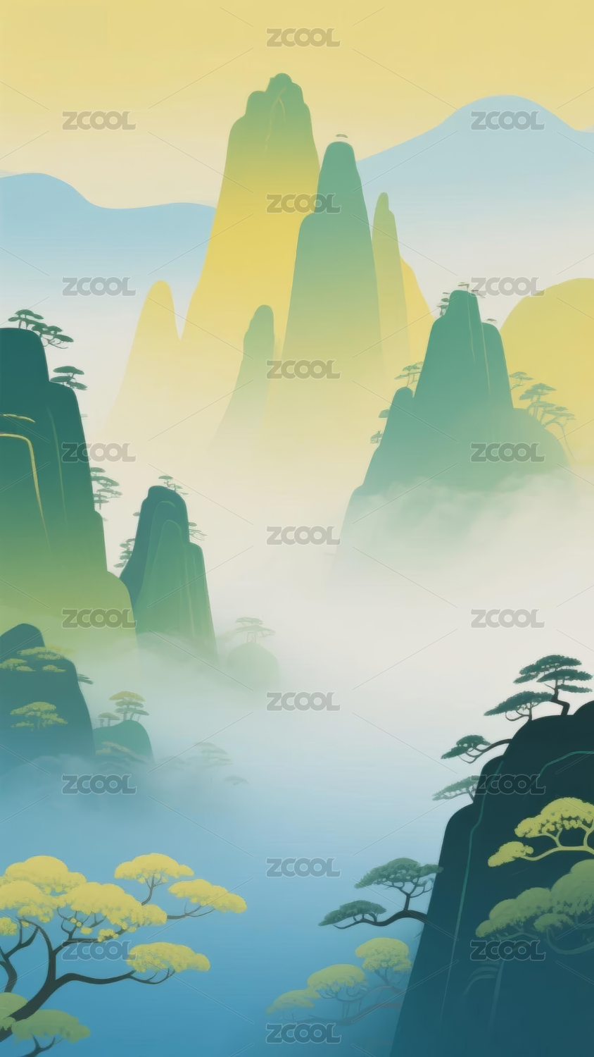 云雾, 风景, 自然, 艺术, 插画, 紫色, 神秘, 梦幻, 树木, 宁静