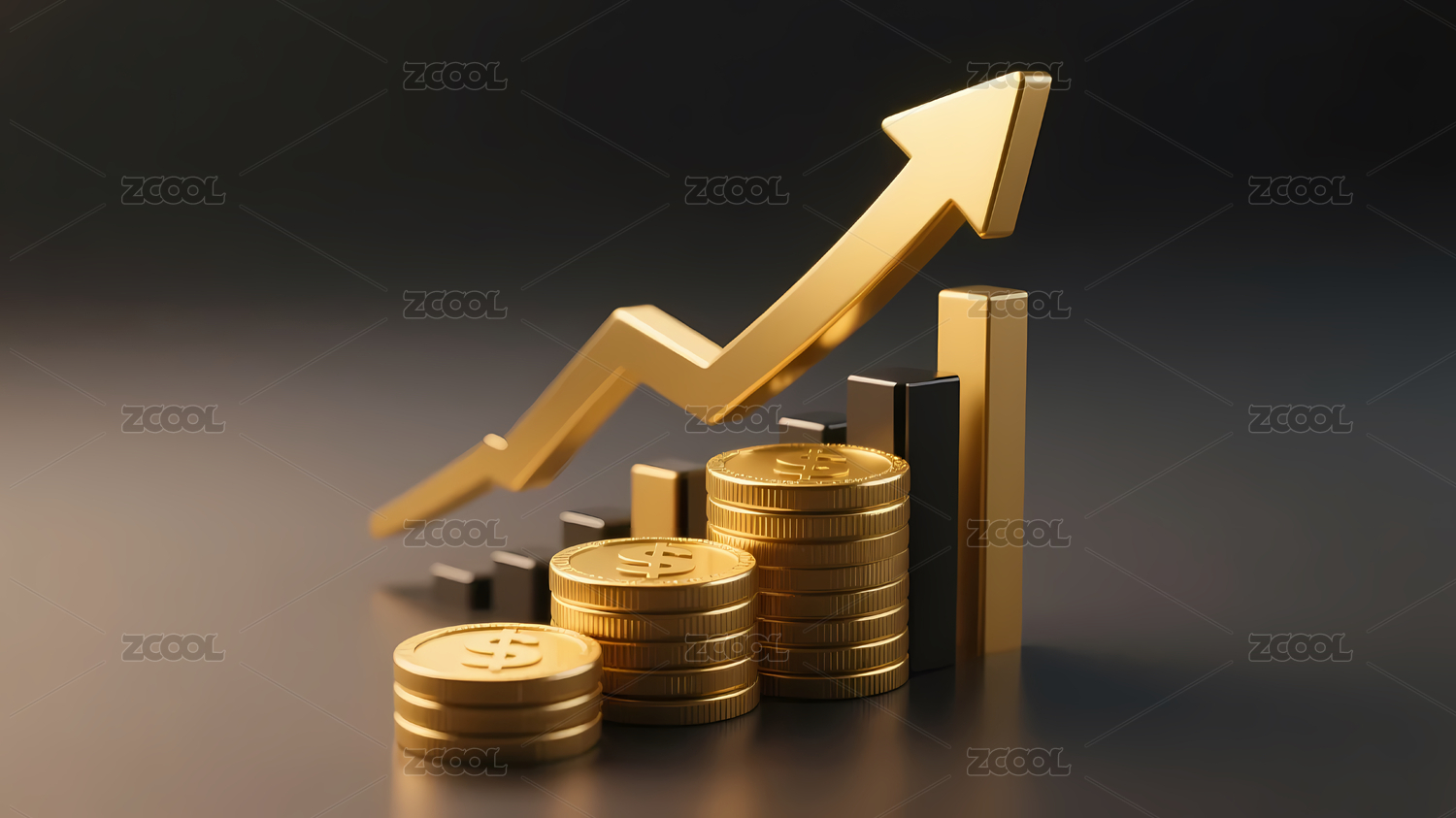 金色柱状图与上升箭头:金融增长的视觉呈现