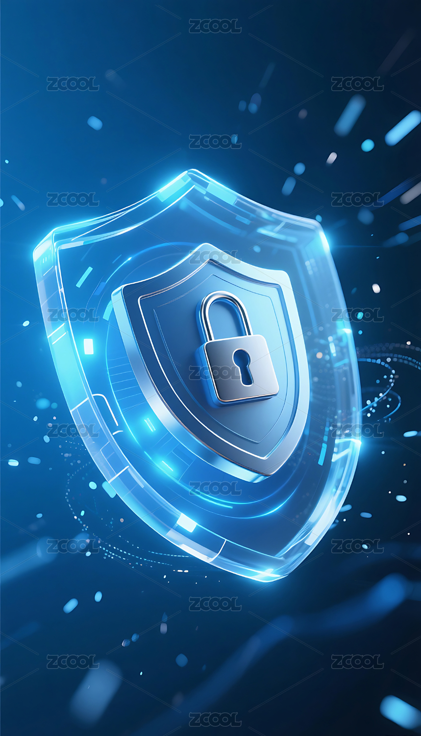 深蓝色科技悬浮半透明数据防护罩盾牌背景