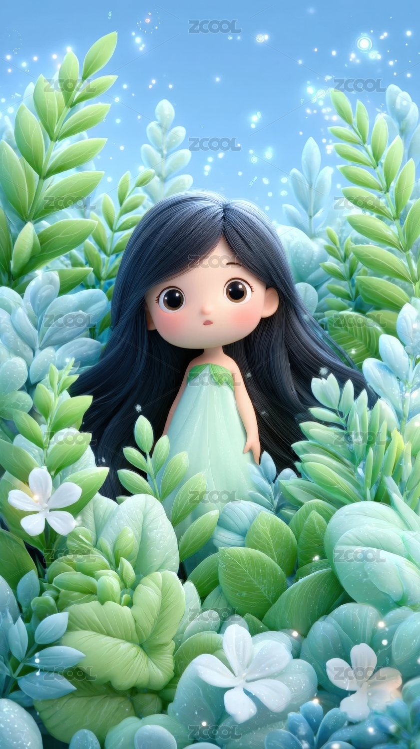 可爱女孩与绿色植物