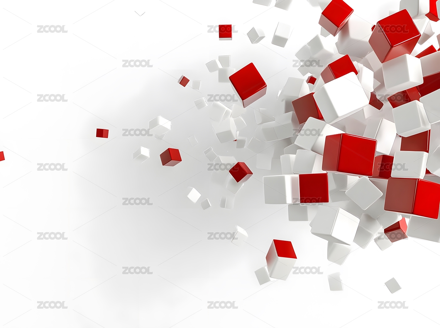 红色白色立方体爆炸式抽象艺术
