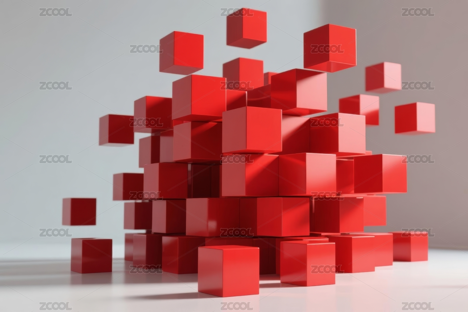 红色方块立体堆叠抽象艺术