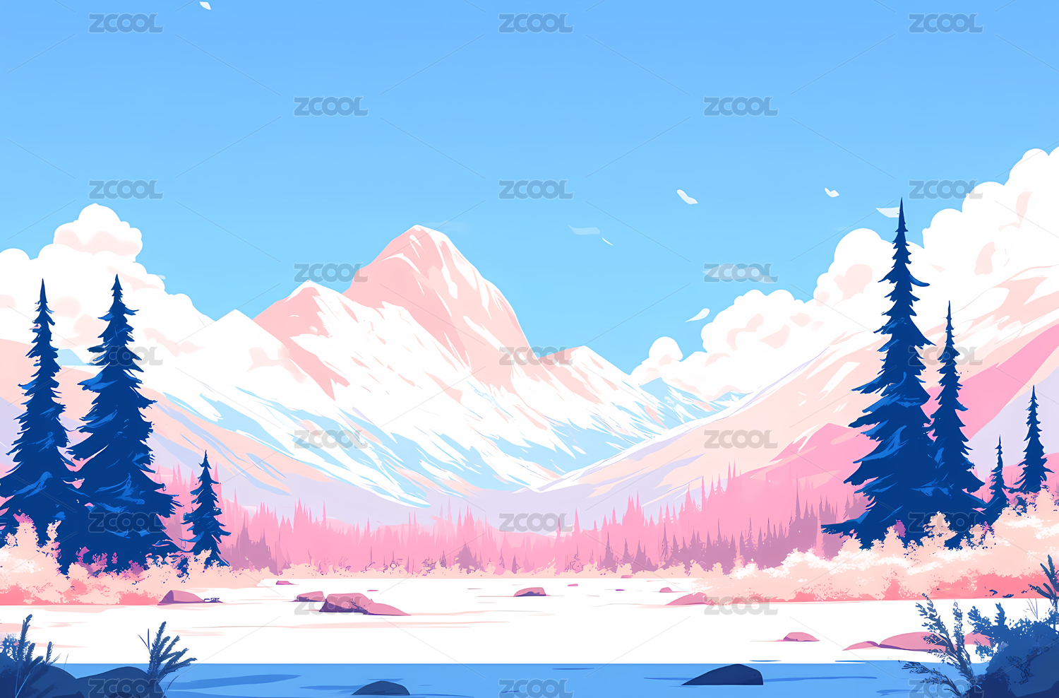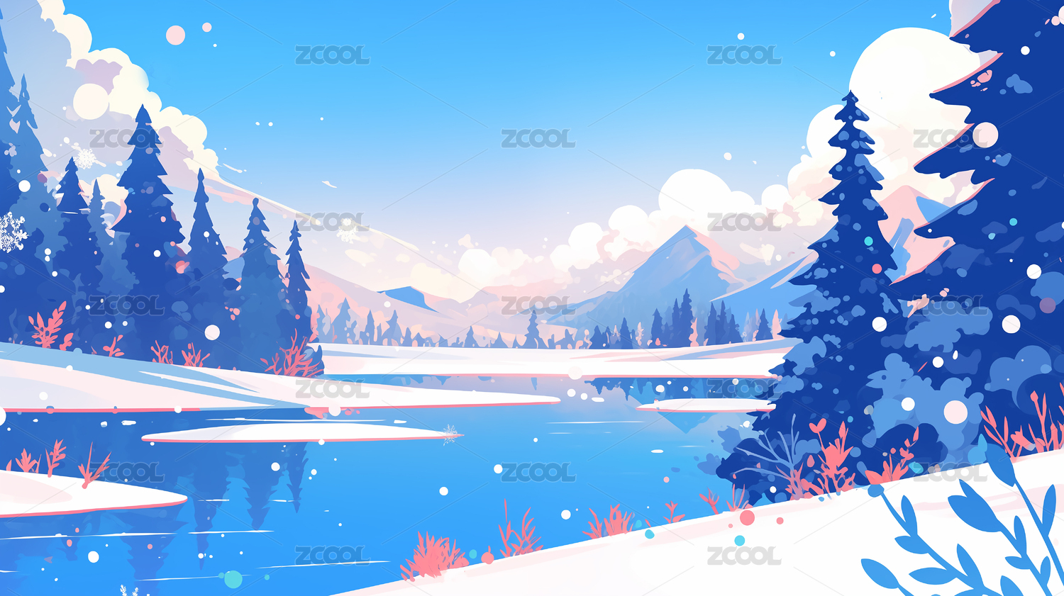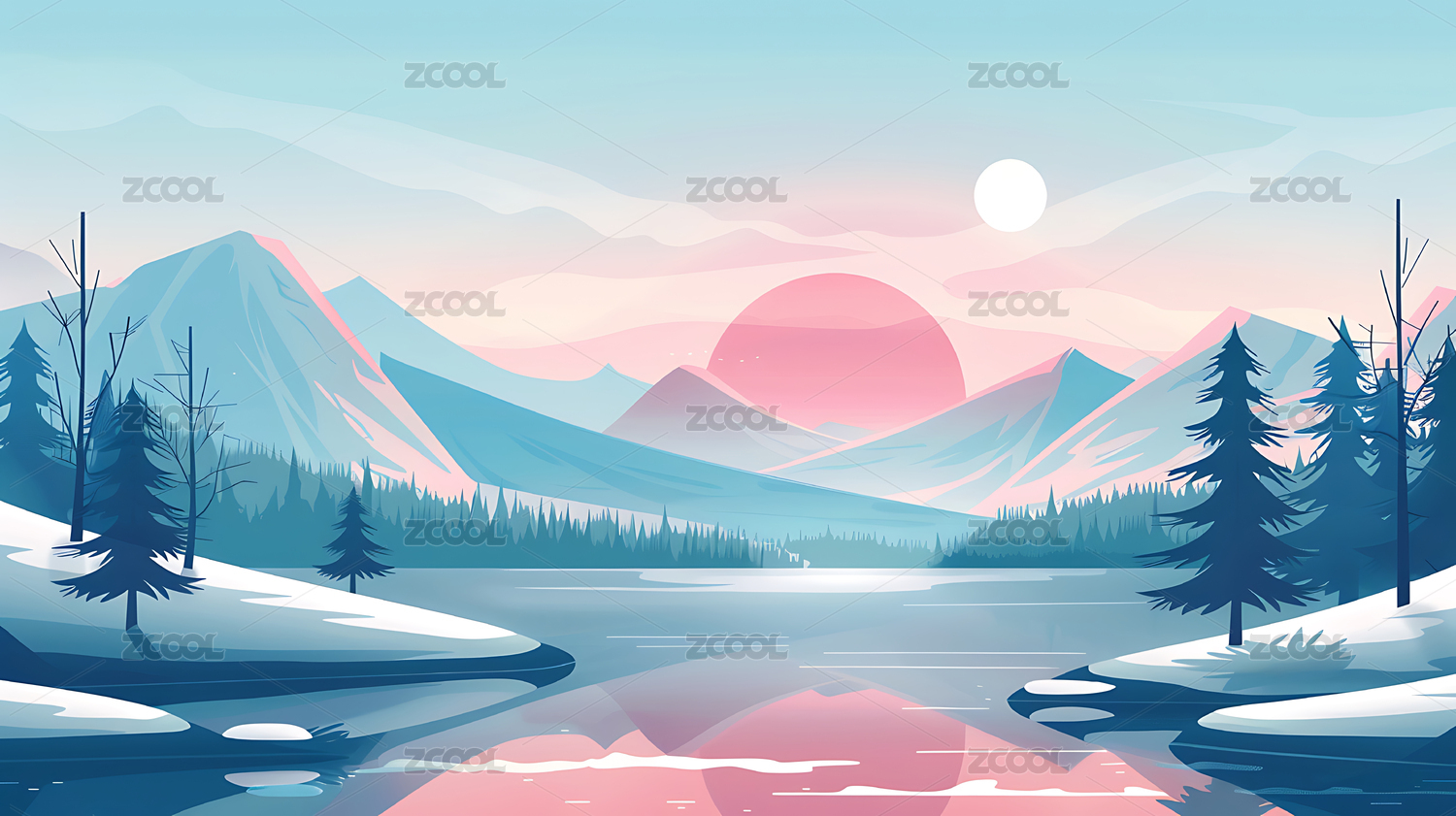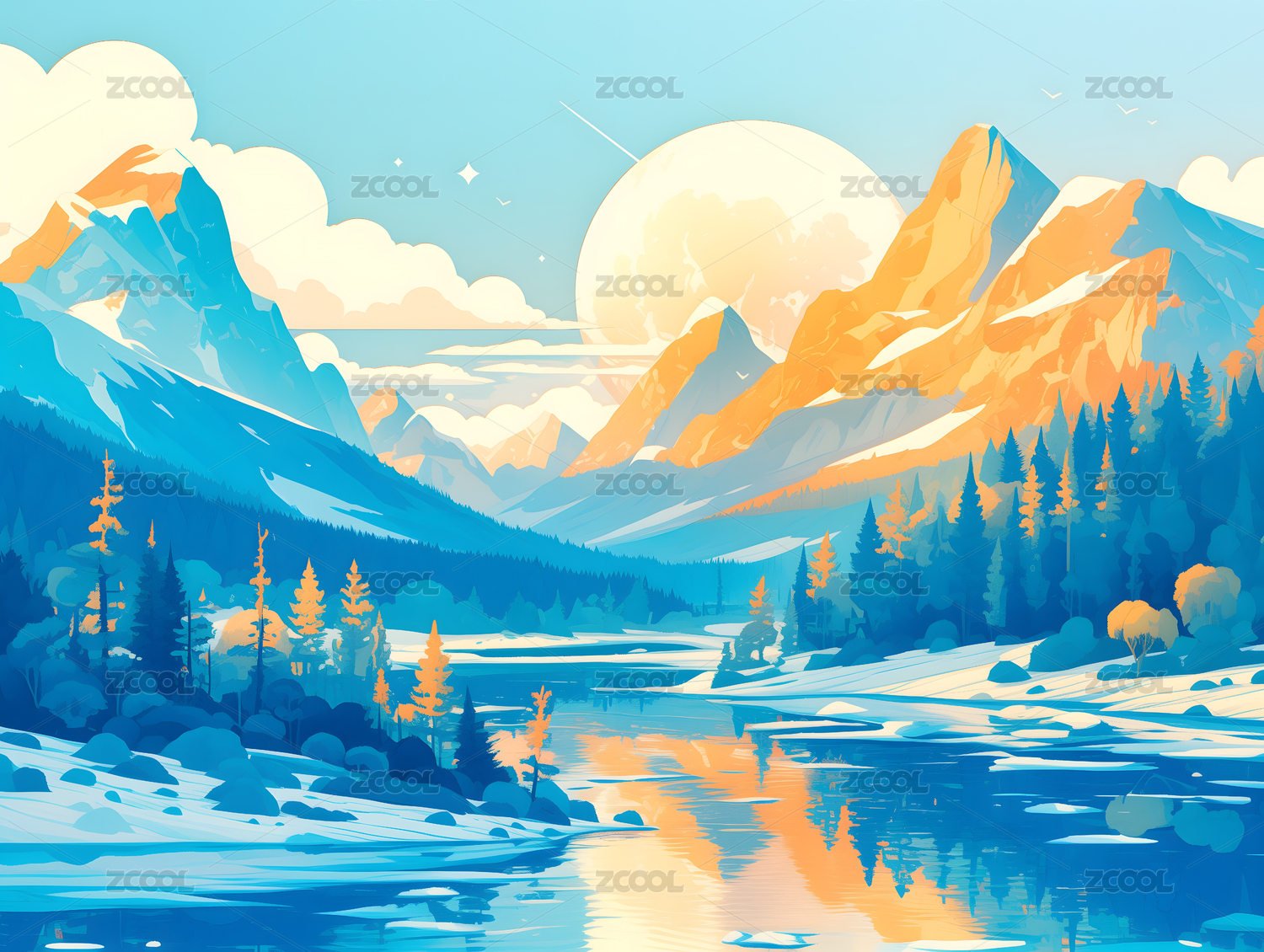 雪山,湖泊,树木,冬季,蓝天,太阳,自然,风景,冰面,宁静