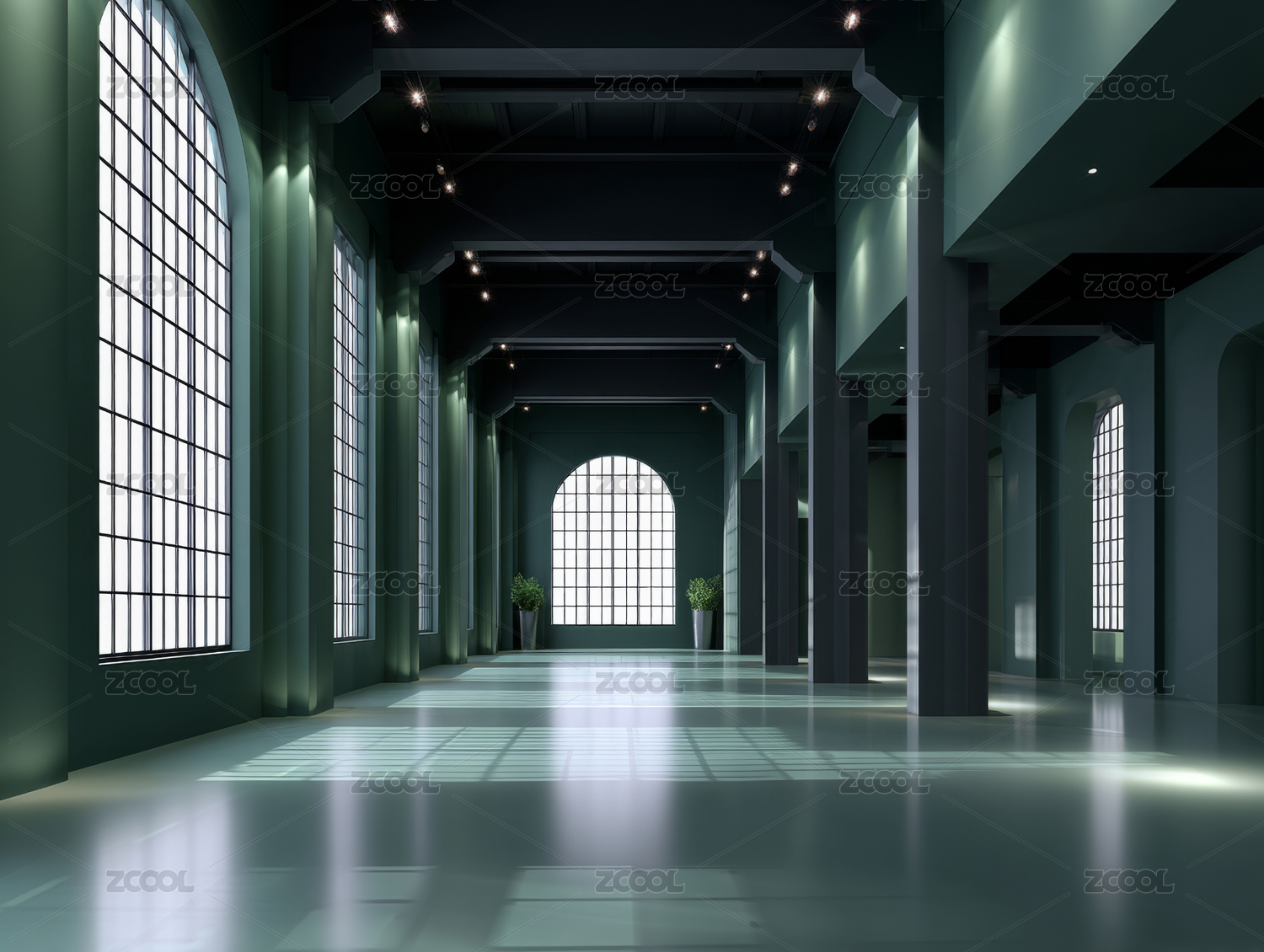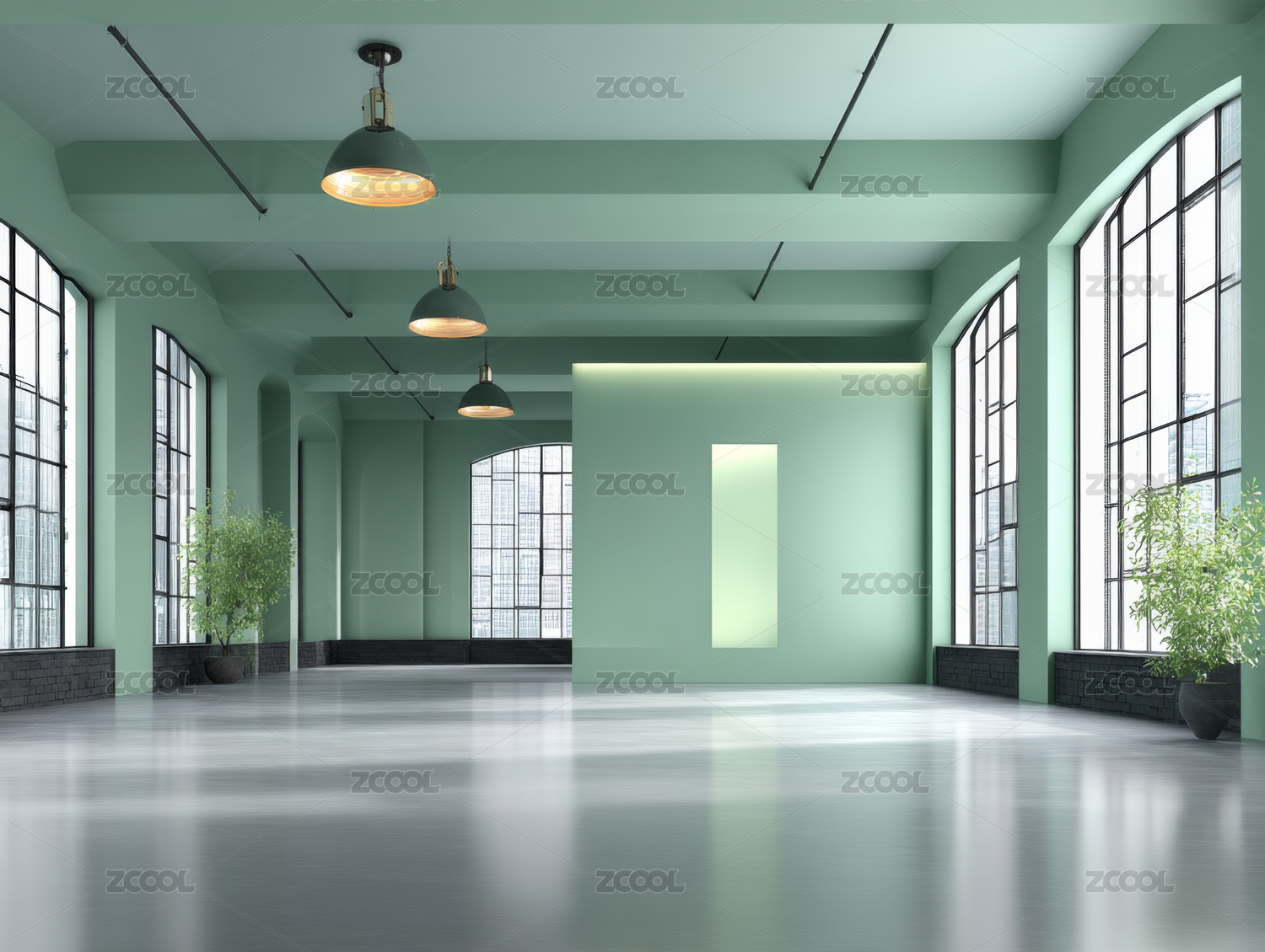 绿色,工业风,室内,空间,窗户,天花板,植物,光线,空旷,现代