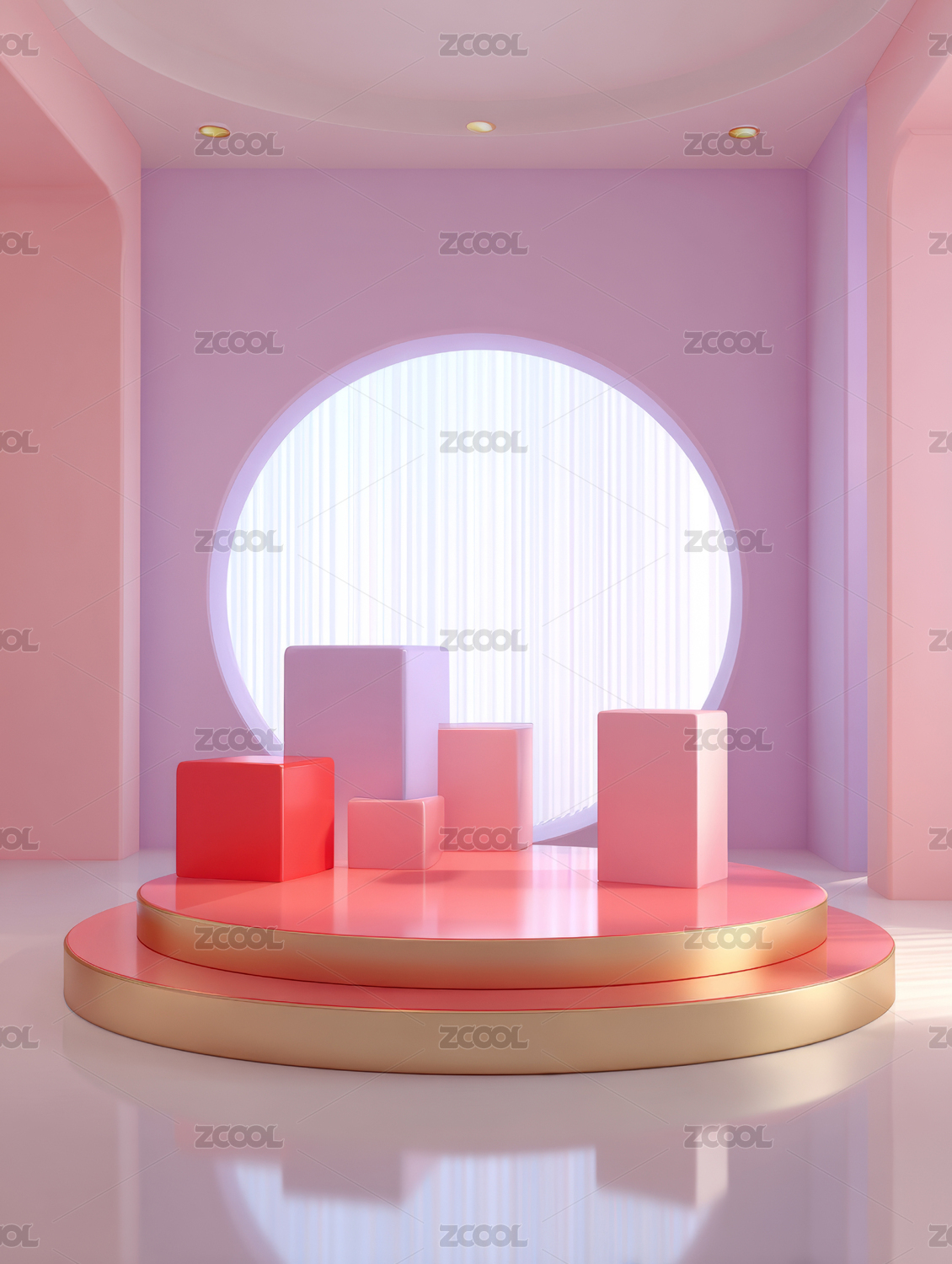 红色,拱门,白色,圆台,金色,装饰,粉色,背景,植物,室内