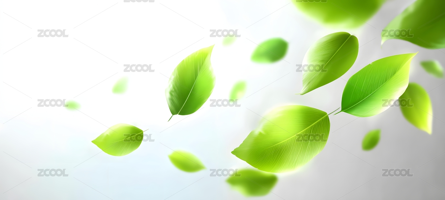 翠绿枝叶飞舞 唯美清新浅蓝背景