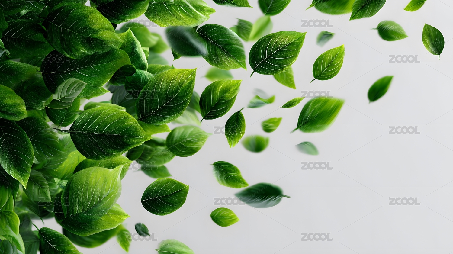 翠绿叶片飞舞 轻盈飘逸 清新梦幻