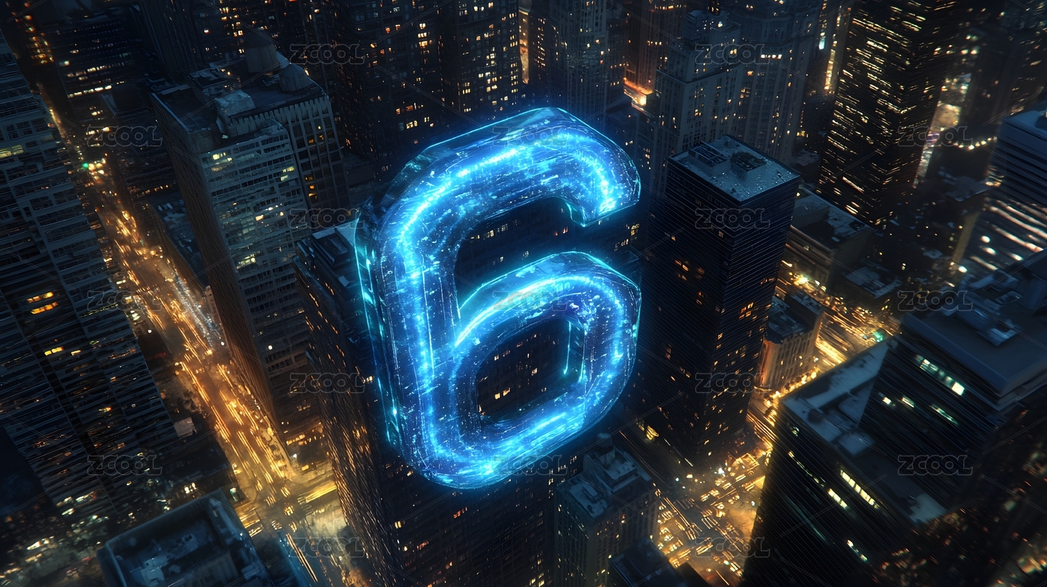 城市上空的数字6