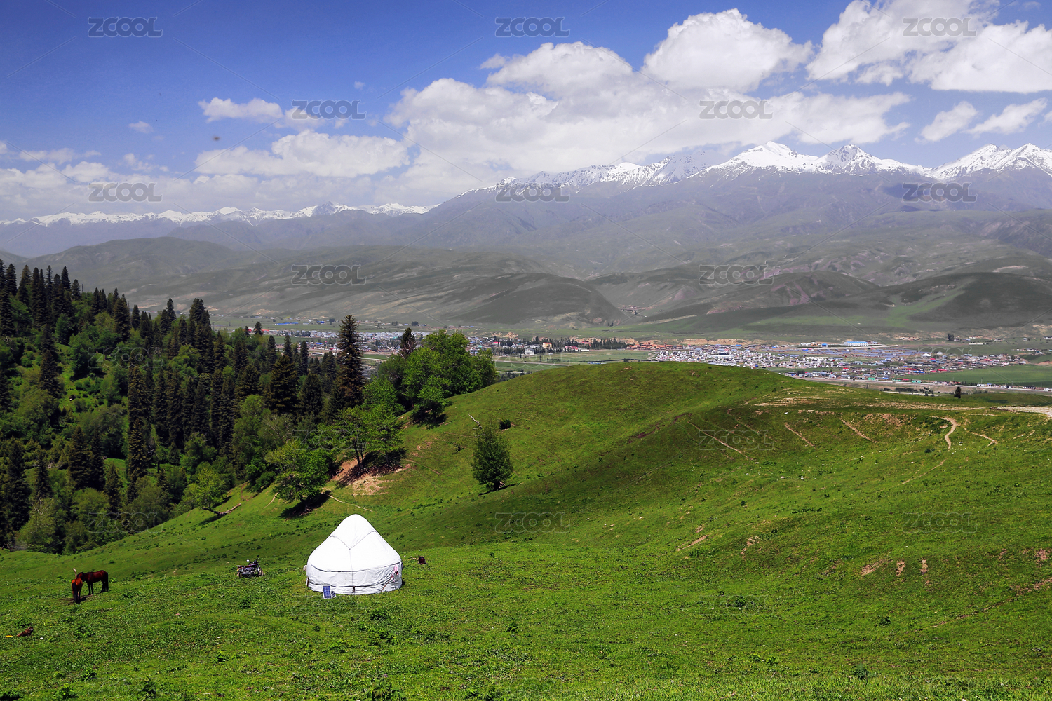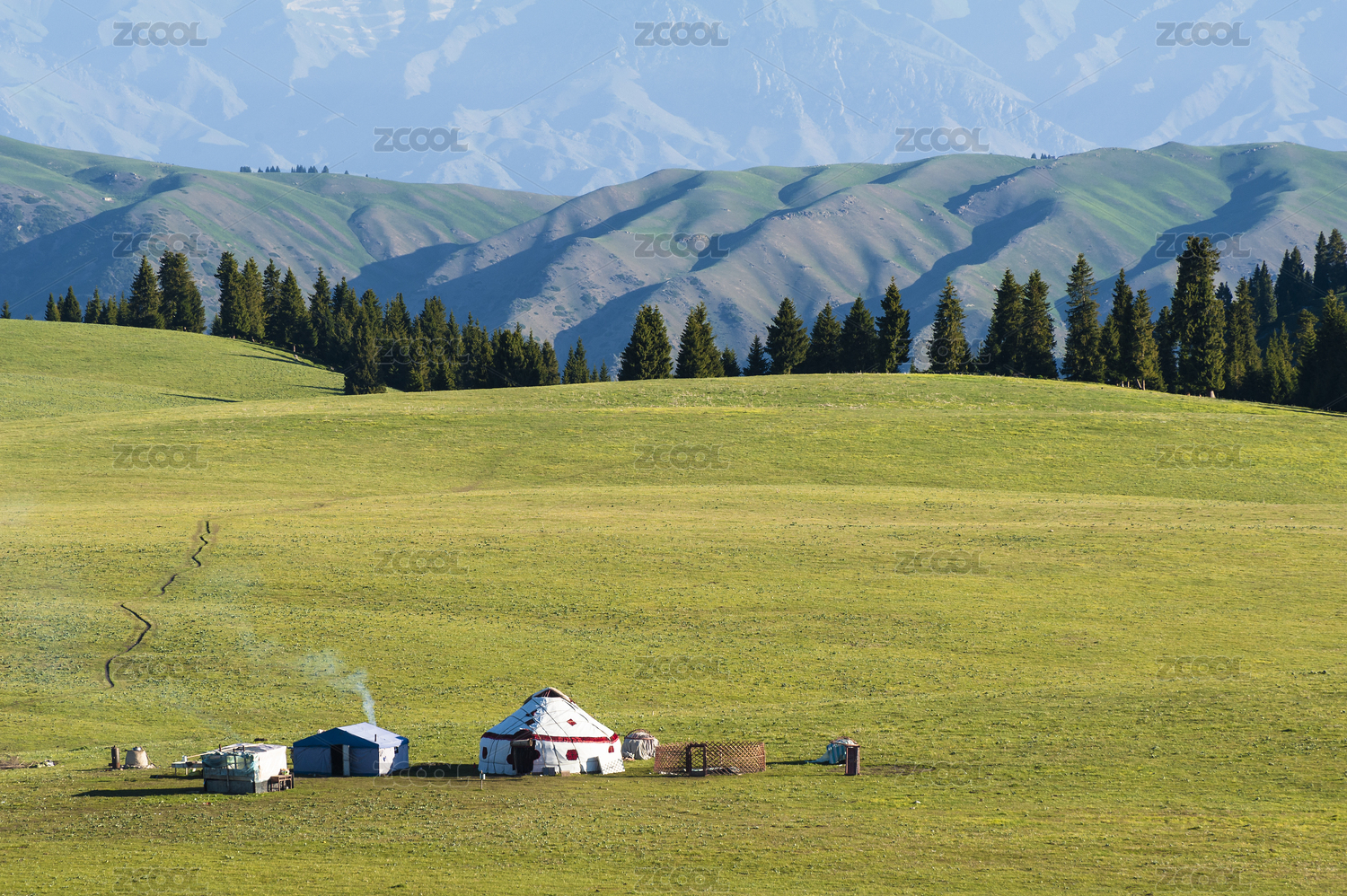 中国新疆喀拉峻草原上哈萨克族的毡房