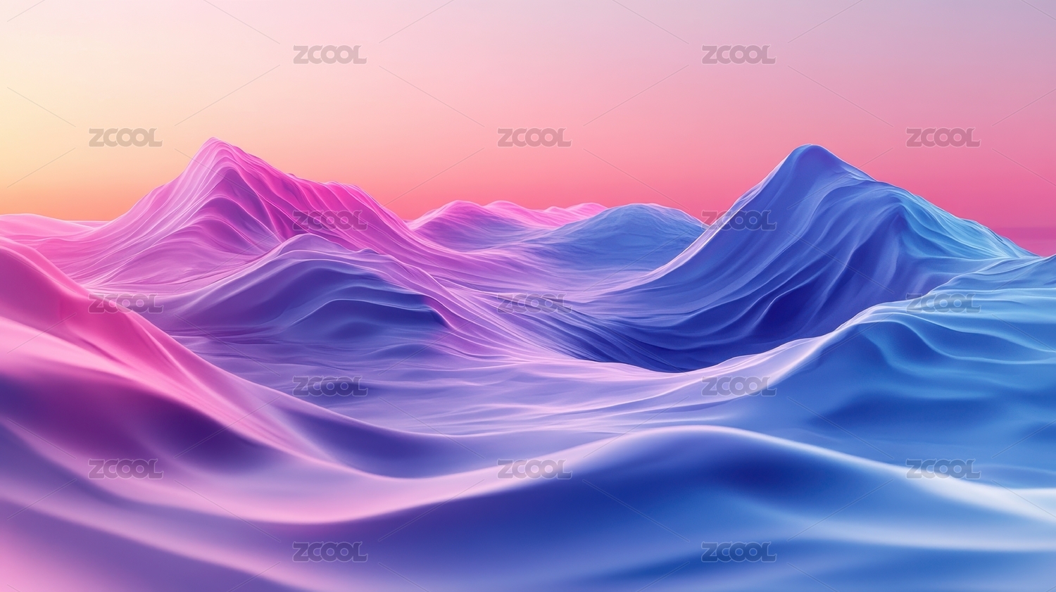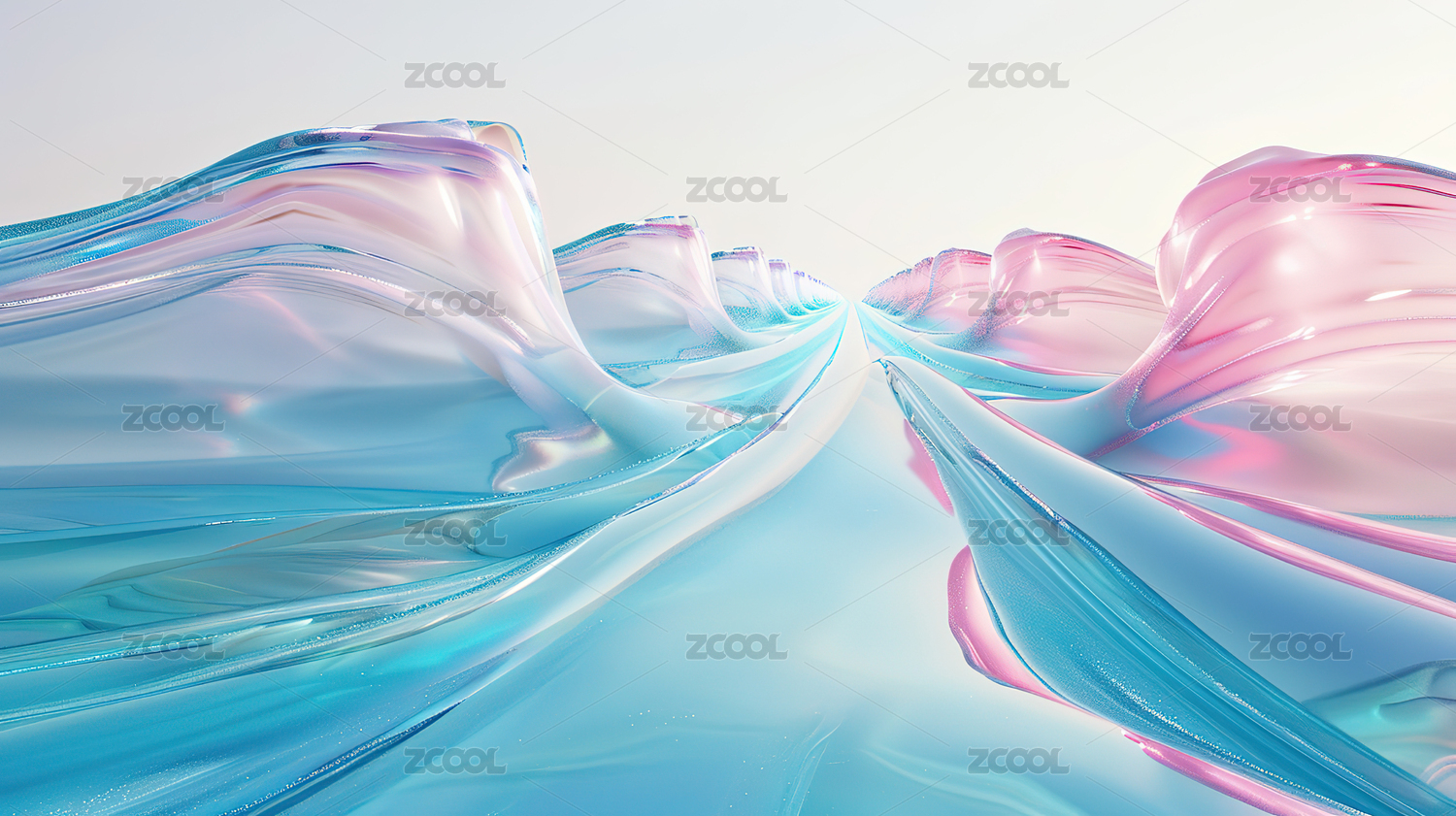 3D炫彩流动弯曲线条山峰道路电商抽象背景