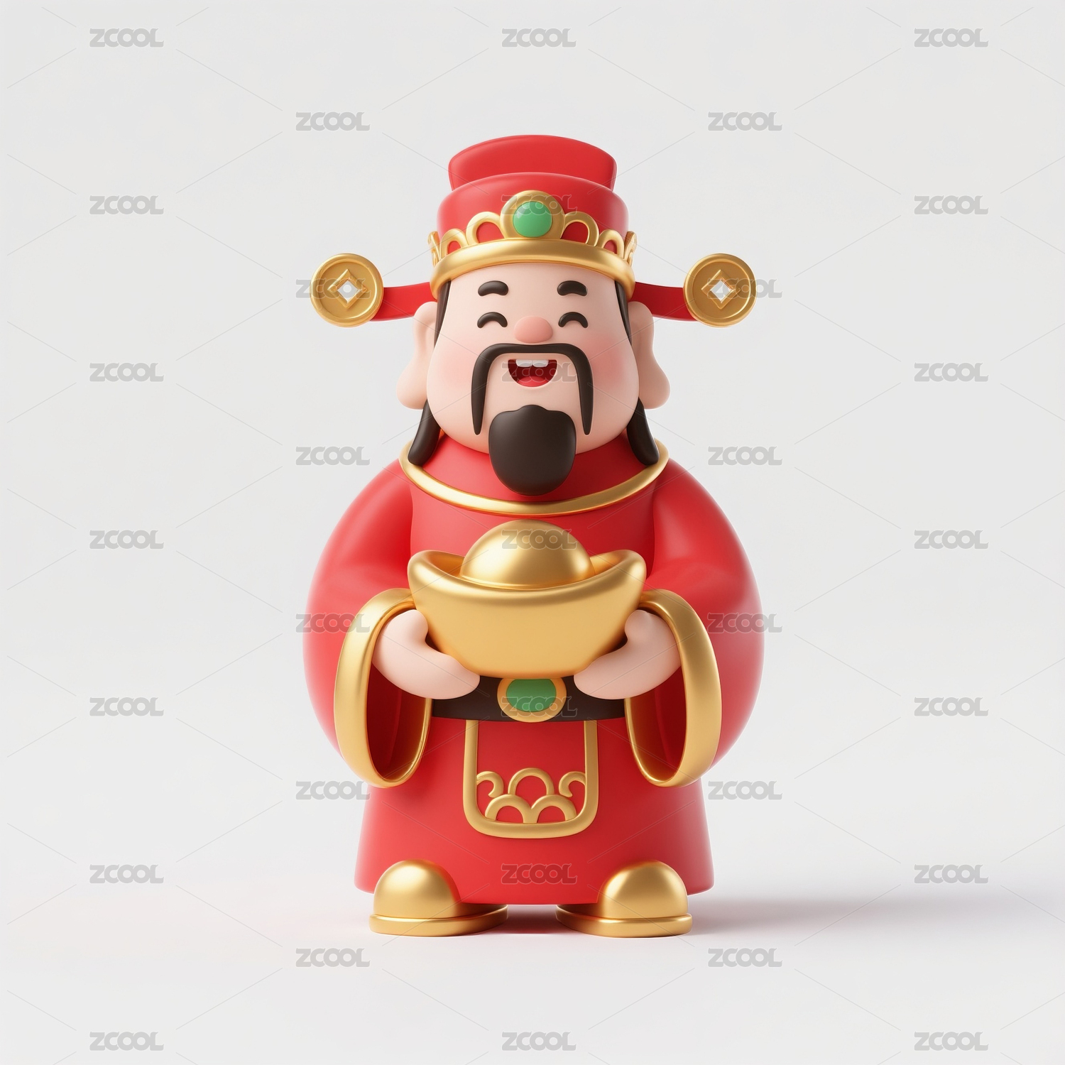怀抱金砖的3D卡通财神爷