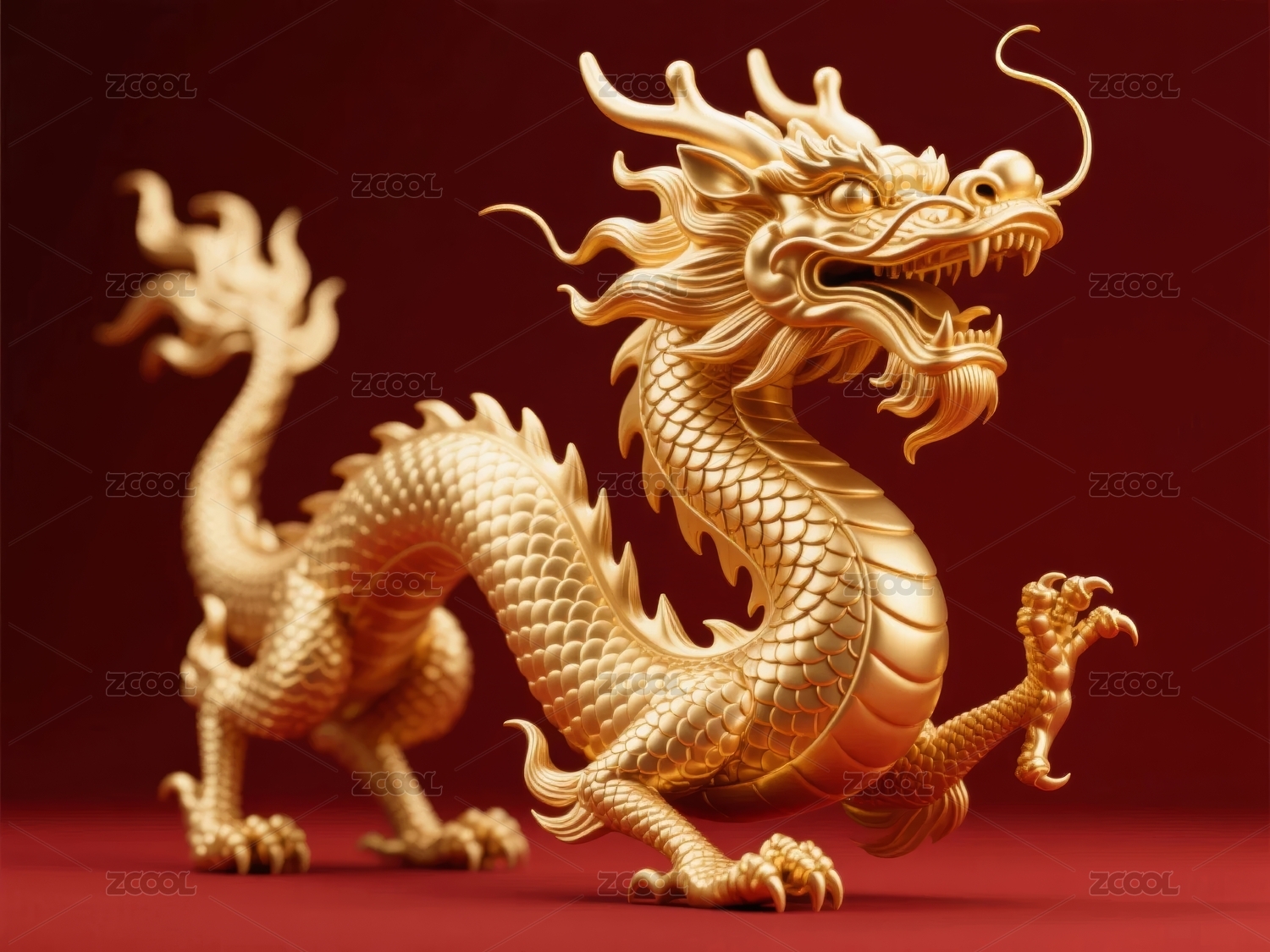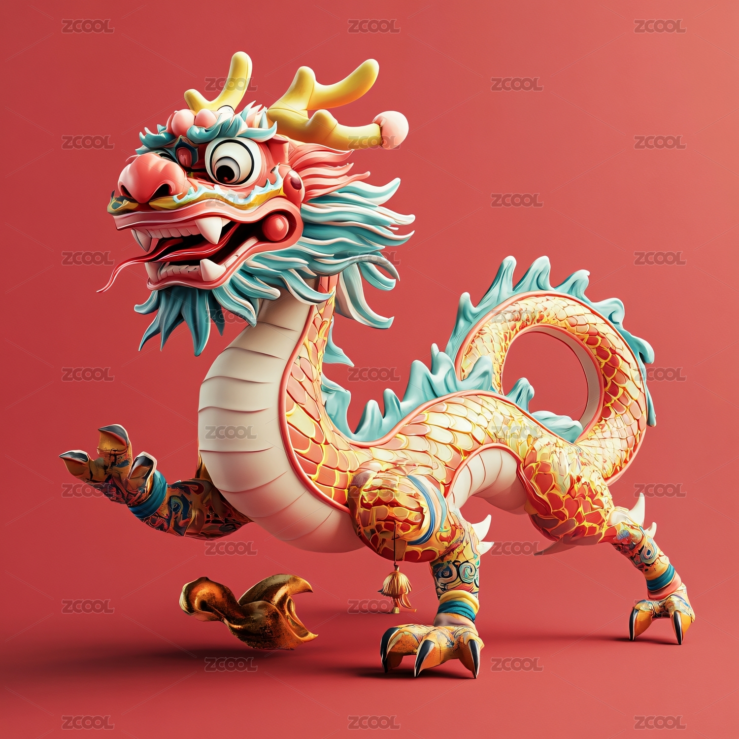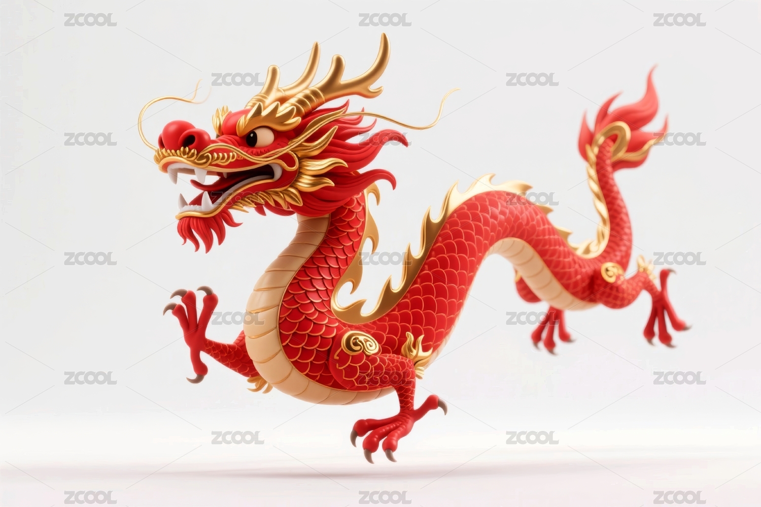 一条红色的3D中国龙
